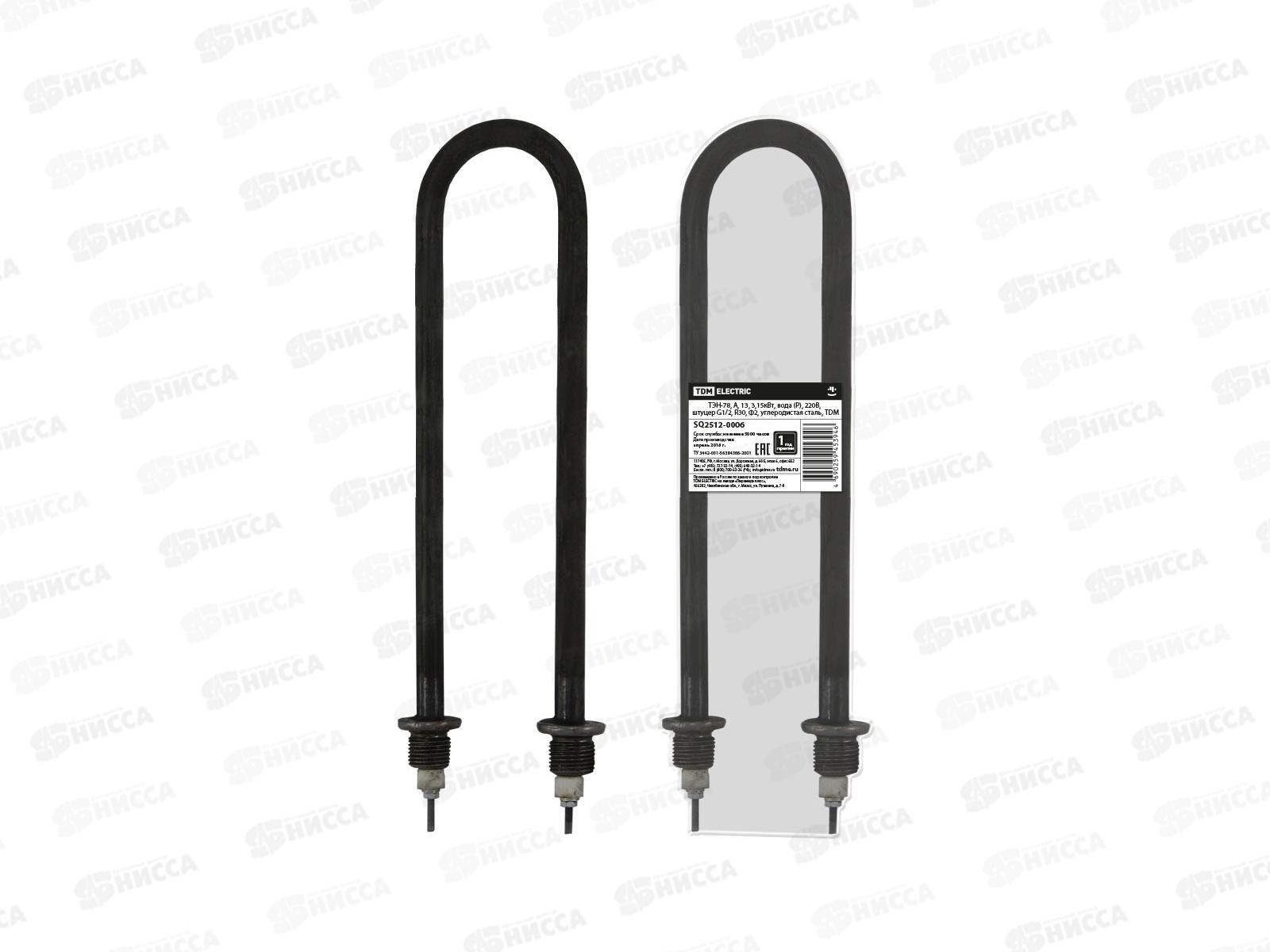 ТЭН-78 TDM 13, 3,15 кВт, вода Р, 220 В, штуцер G1/2, R30, Ф2, углеродистая сталь SQ2512-0006 предназначен для нагрева воды, воздуха и слабых растворов...