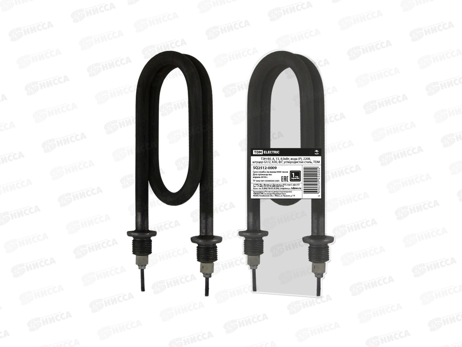 ТЭН TDM 80, А, 13, 4 кВт, вода (Р), 220В, штуцер G1/2, R30, Ф7, углеродистая сталь SQ2512-0009 применяется в водонагревателях, кипятильниках, котлах о...