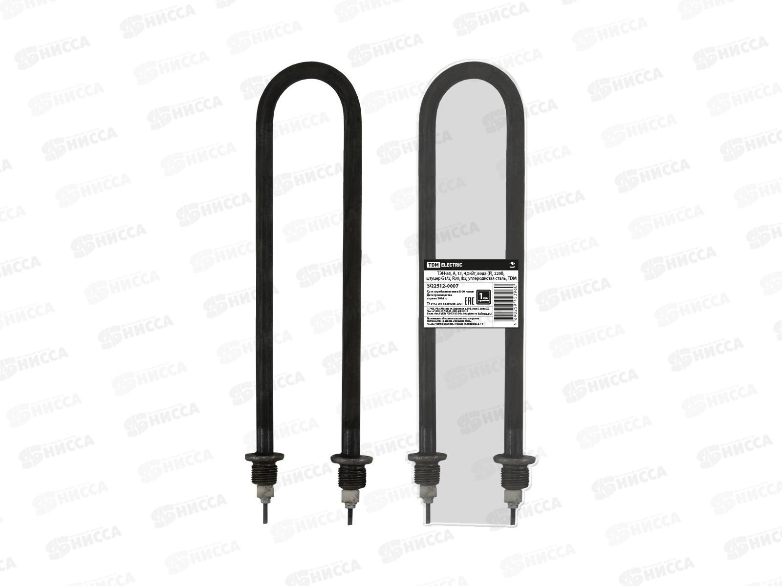 ТЭН TDM 85, А, 13, 4 кВт, вода (Р), 220В, штуцер G1/2, R30, Ф2, углеродистая сталь SQ2512-0007 применяется в водонагревателях, кипятильниках, котлах о...