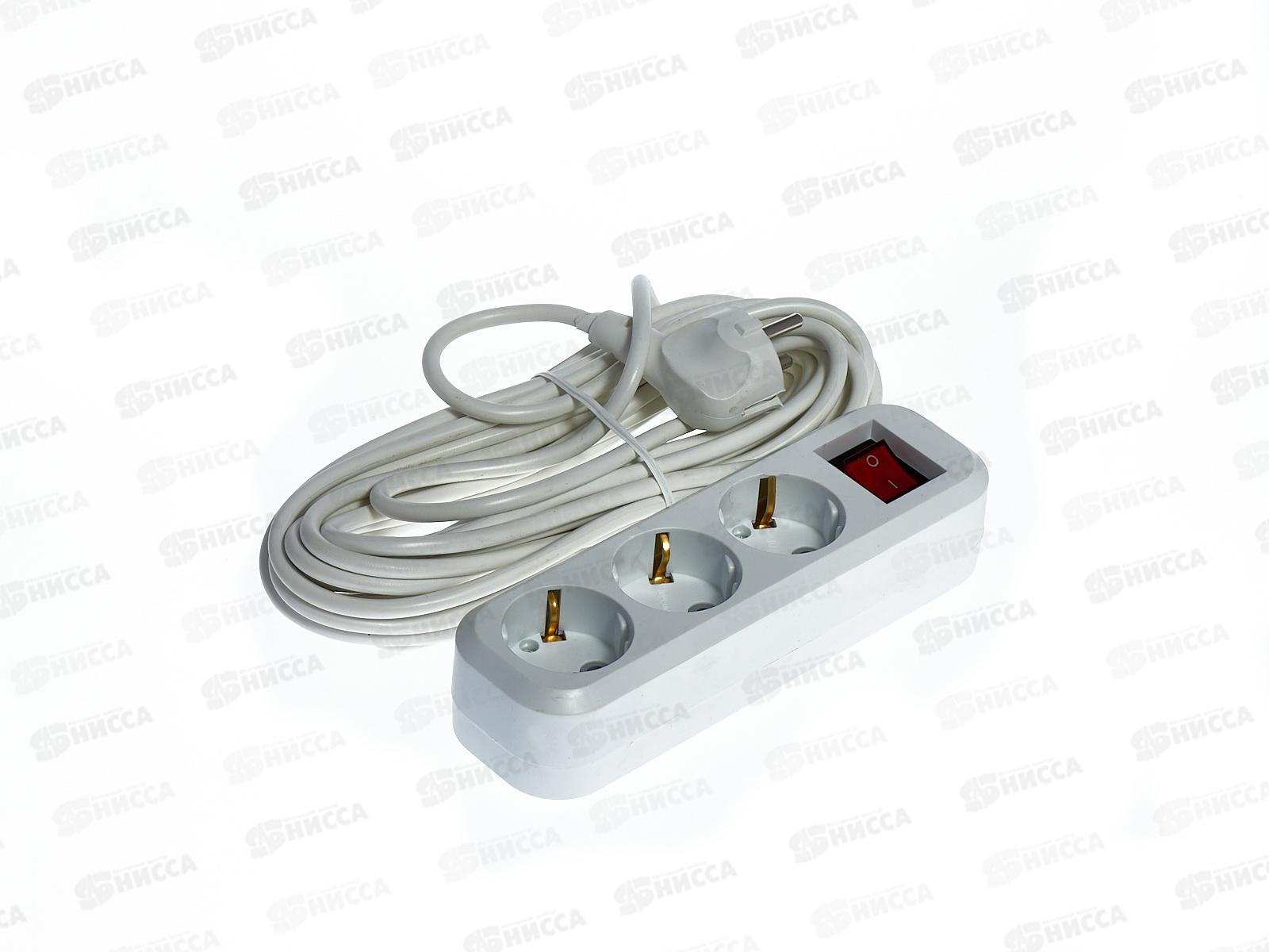 Код:551253; Удлинитель 3 гнезда, 10метров,с заземления, 10А, 2300Вт, белый, Народный, 1044