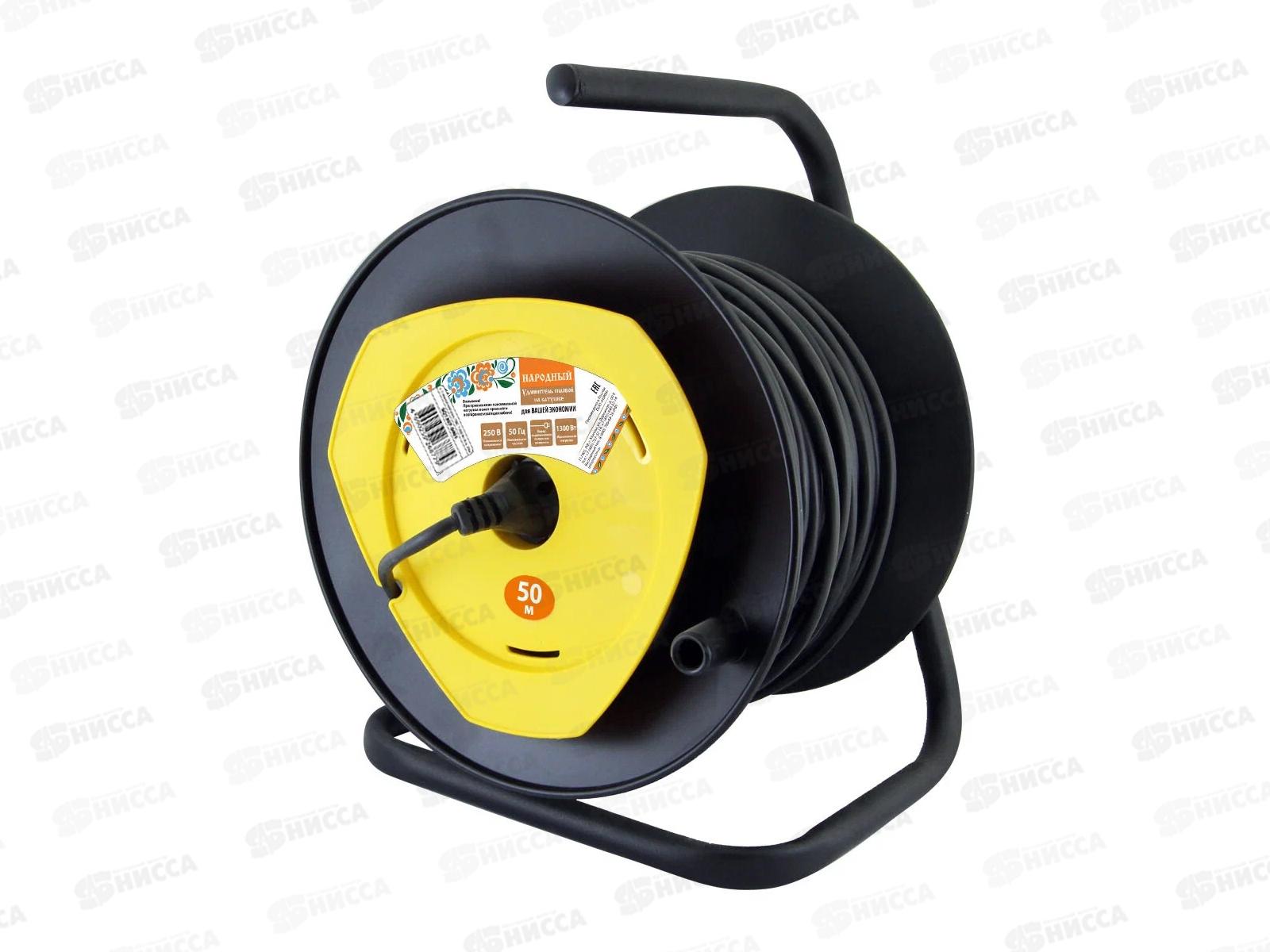 Код:463225; Удлинитель на катушке Народный 1 розетка 50м ПВС 1300Вт, 0404