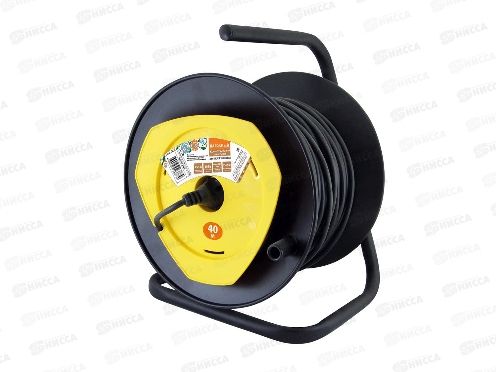 Код:130456; Удлинитель на катушке Народный 1розетка 40м ПВС 2200Вт с заземлением, 0413