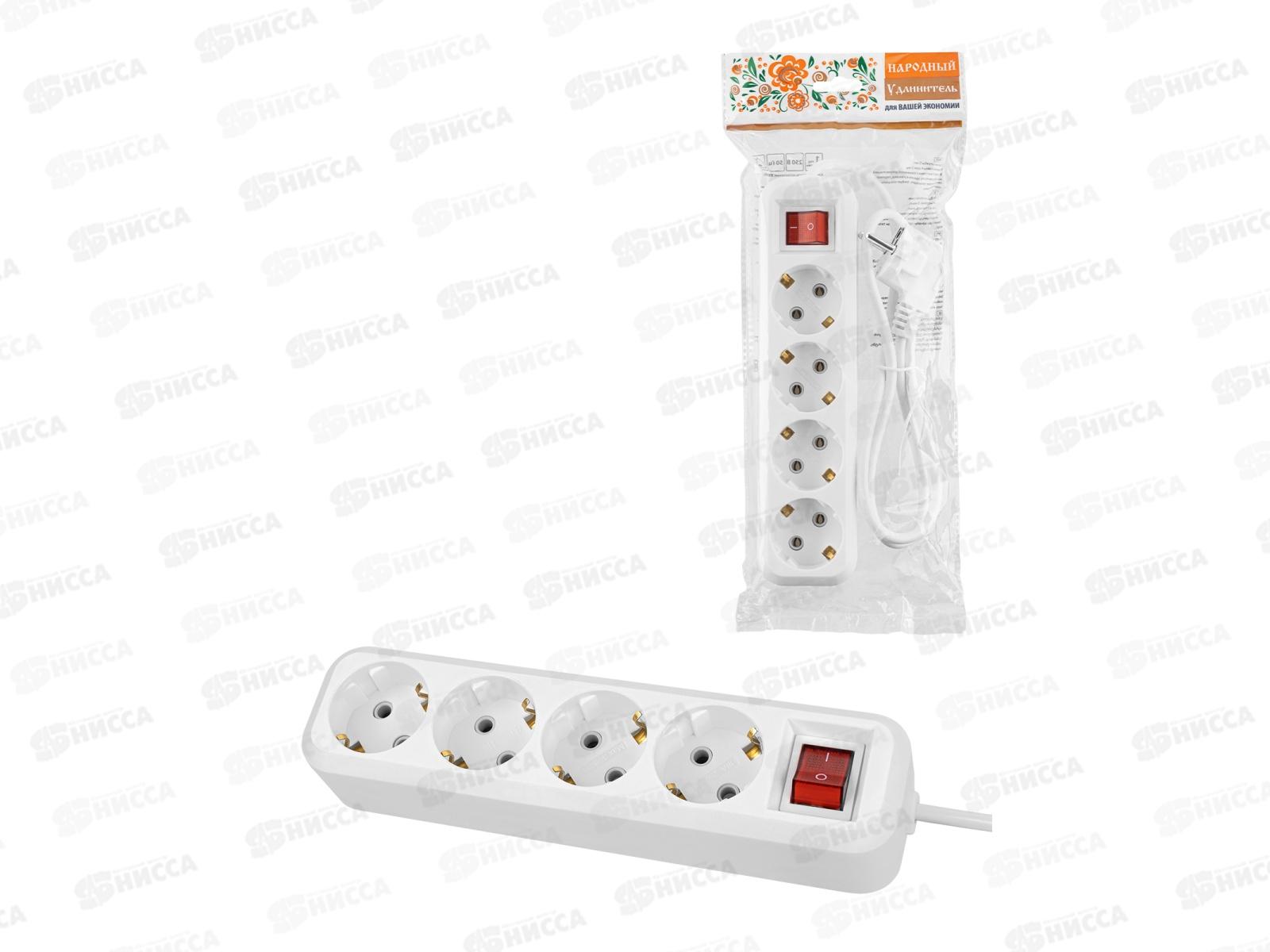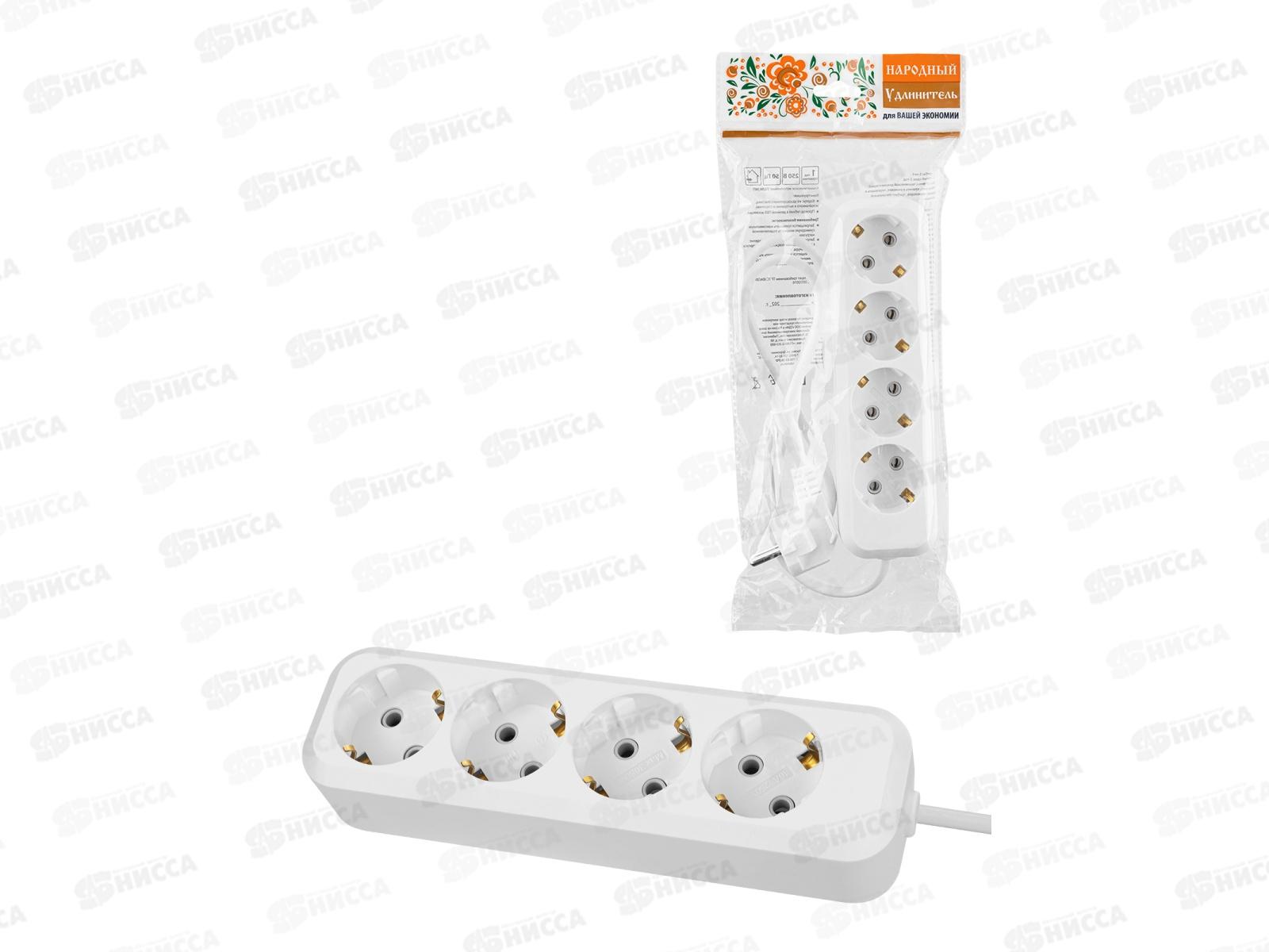Код:551445; Удлинитель Народный У4 4гнезда 5м, без заземления, 2300Вт белый 10А, 1317
