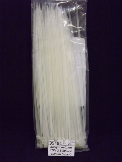 Код:099484; Хомут нейлон TDM 2.5*200мм 100шт белый *20
