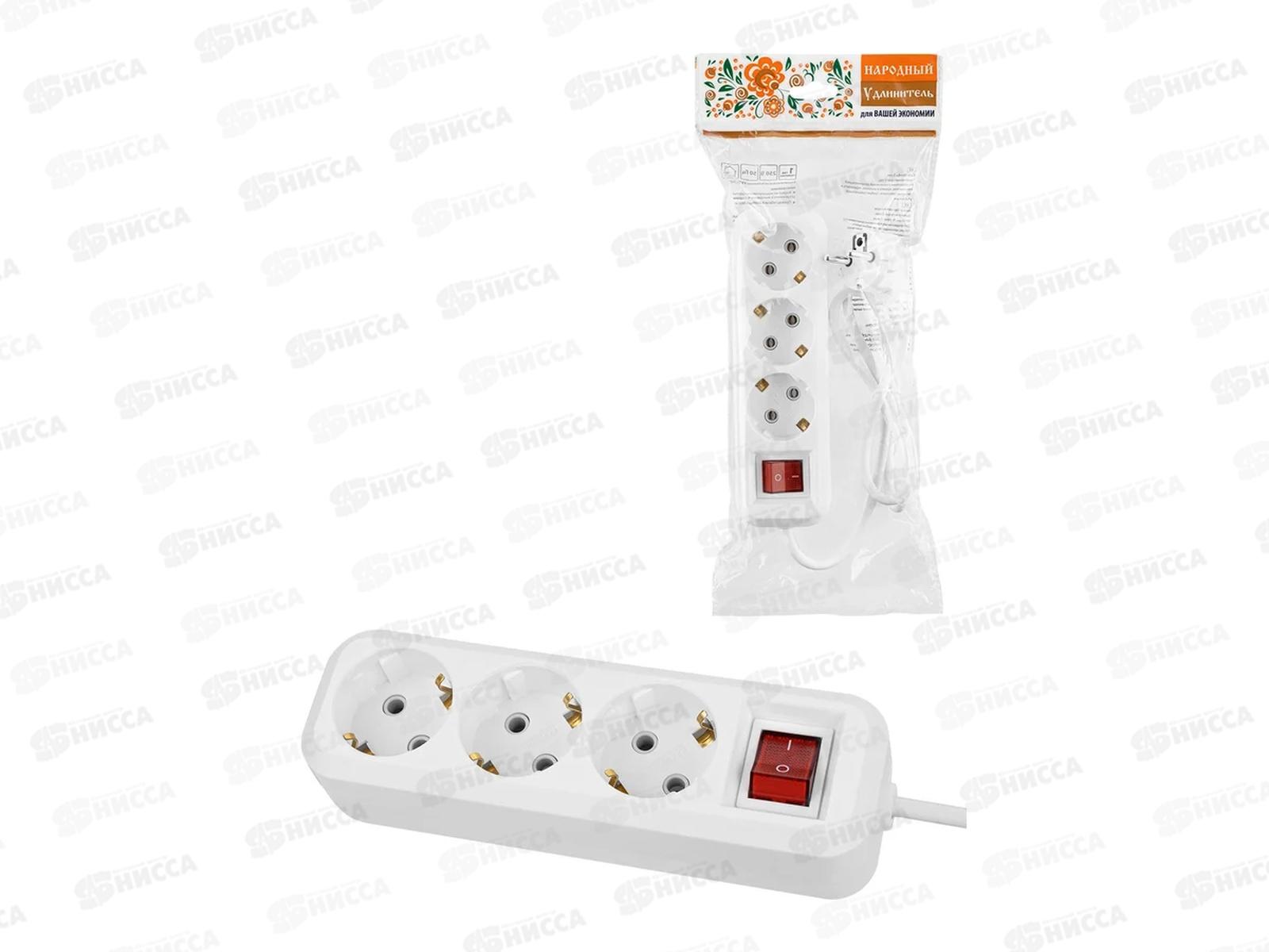 Код:099742; Удлинитель Народный УН3 3 гнезда 1.5м, ШВВП 2*0.75кв.мм 6А, 1200 *62