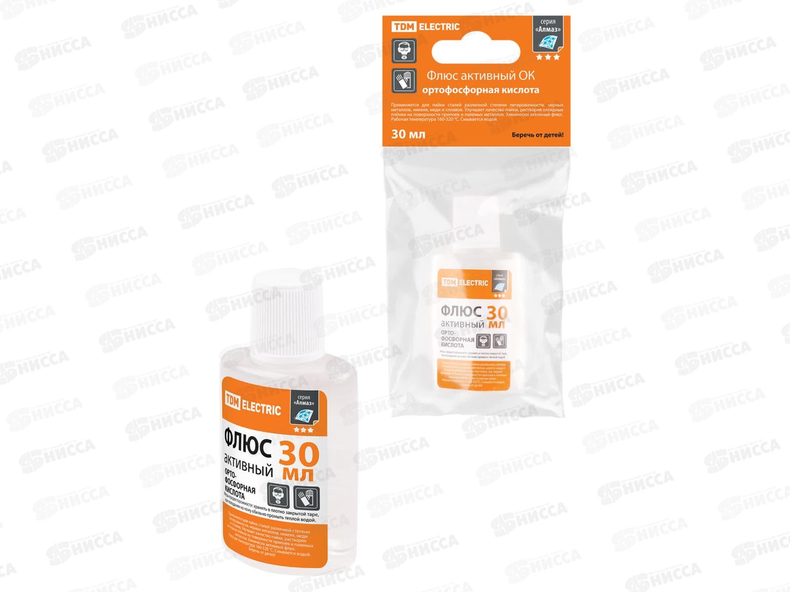 Код:567186; Флюс активный ОК, ортофосфорная кислота, 30 мл, дозатор, инд. упаковка, серия "Алмаз" TDM, 1503
