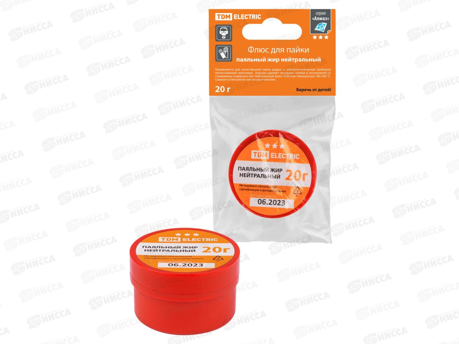 Код:567194; Флюс для пайки, паяльный жир нейтральный, 20 г, банка, инд. упаковка, серия "Алмаз" TDM, 1513