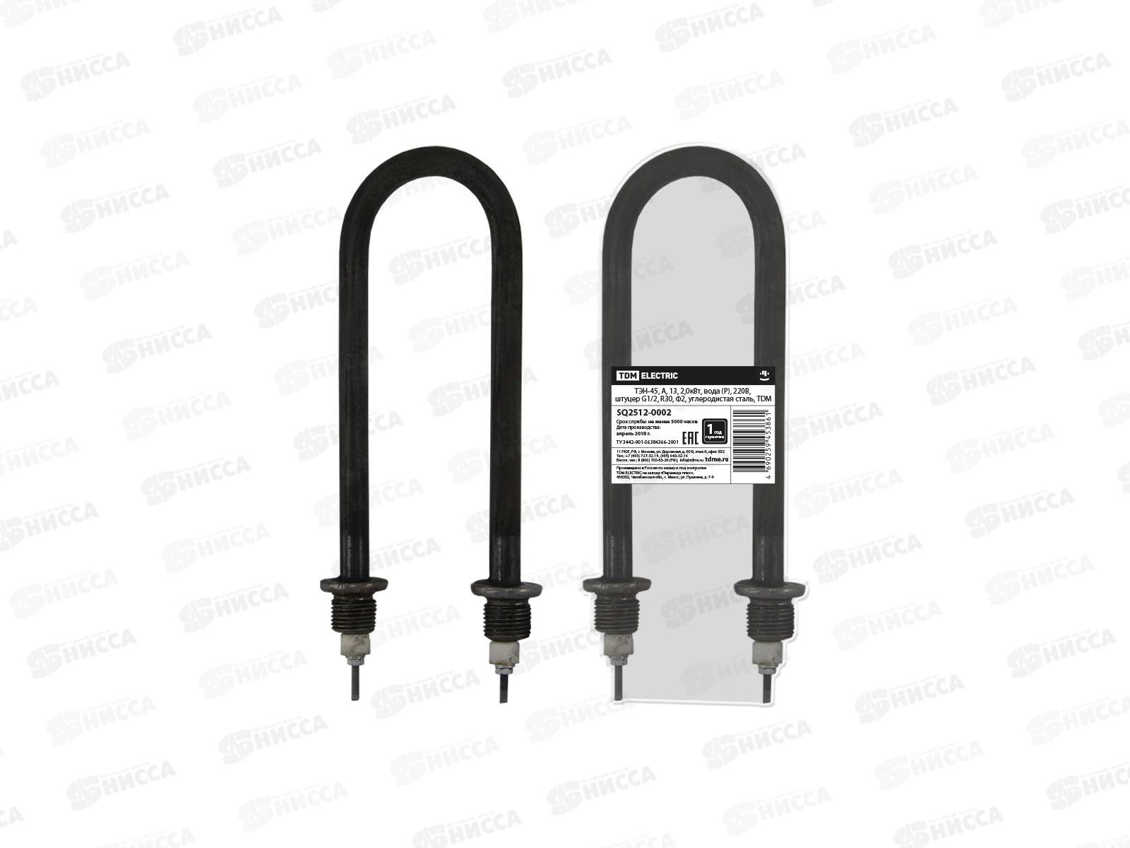 ТЭН TDM 45, А, 13, 1.6 кВт, вода (Р), 220В, штуцер G1/2, R30, Ф2, углеродистая сталь SQ2512-0001 применяется в водонагревателях, кипятильниках, котлах...
