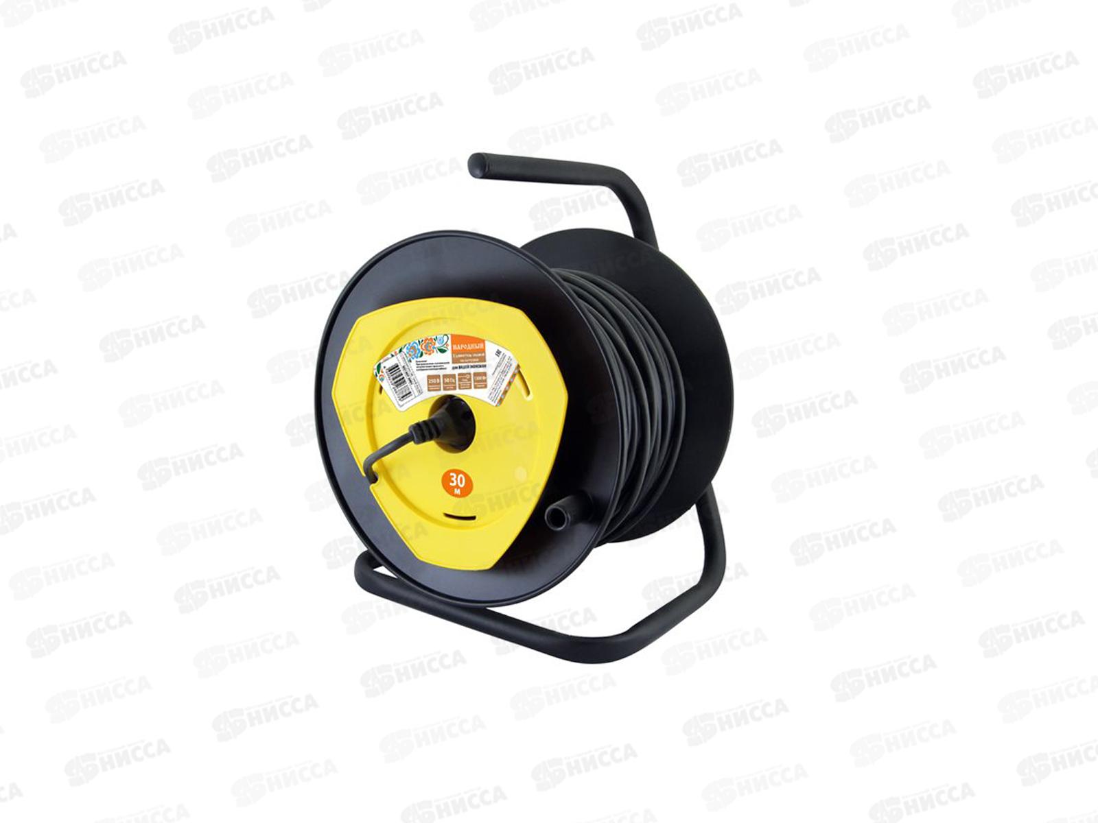 Код:408036; Удлинитель на катушке Народный 1розетка 30м ПВС 1300Вт без заземления, 0402