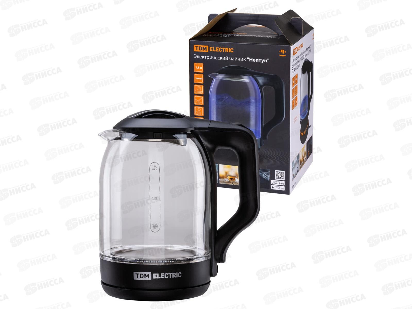 Код:567197; Чайник электр. TDM Нептун, стекло, 1.8л, 1800Вт, черный, 0001 *12
