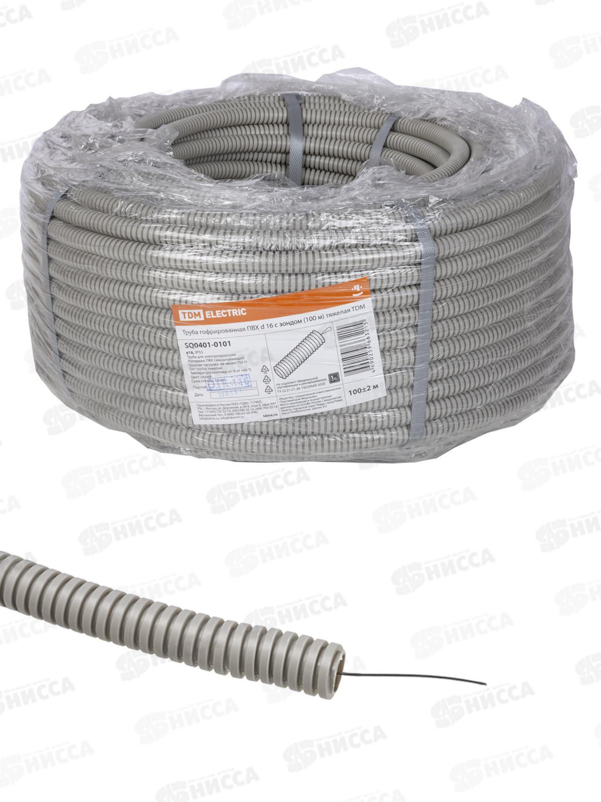 Код:576438; Труба гофрированная ПВХ d32 с зондом (50м) тяжелая TDM, 0104 *100