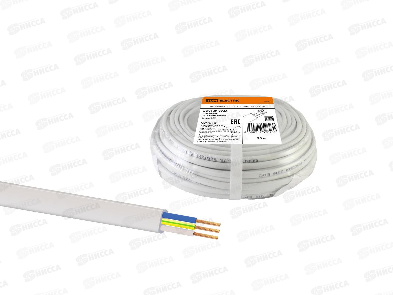 Код:576502; Шнур ШВВП 3х0,5 ГОСТ (50м), белый, 0023 *50