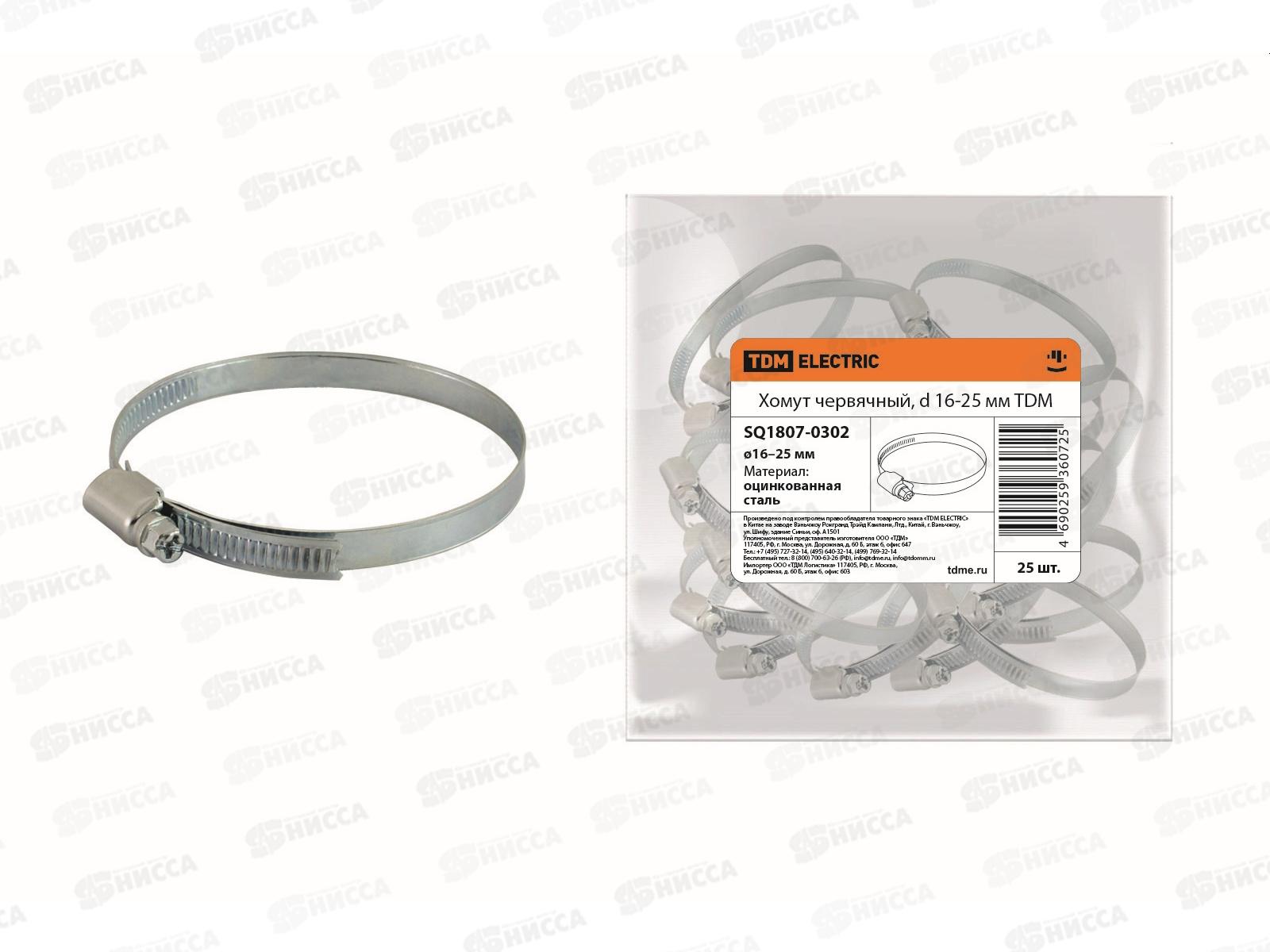Код:479432; Хомут червячный TDM 16-25мм, 0302 *25/1000