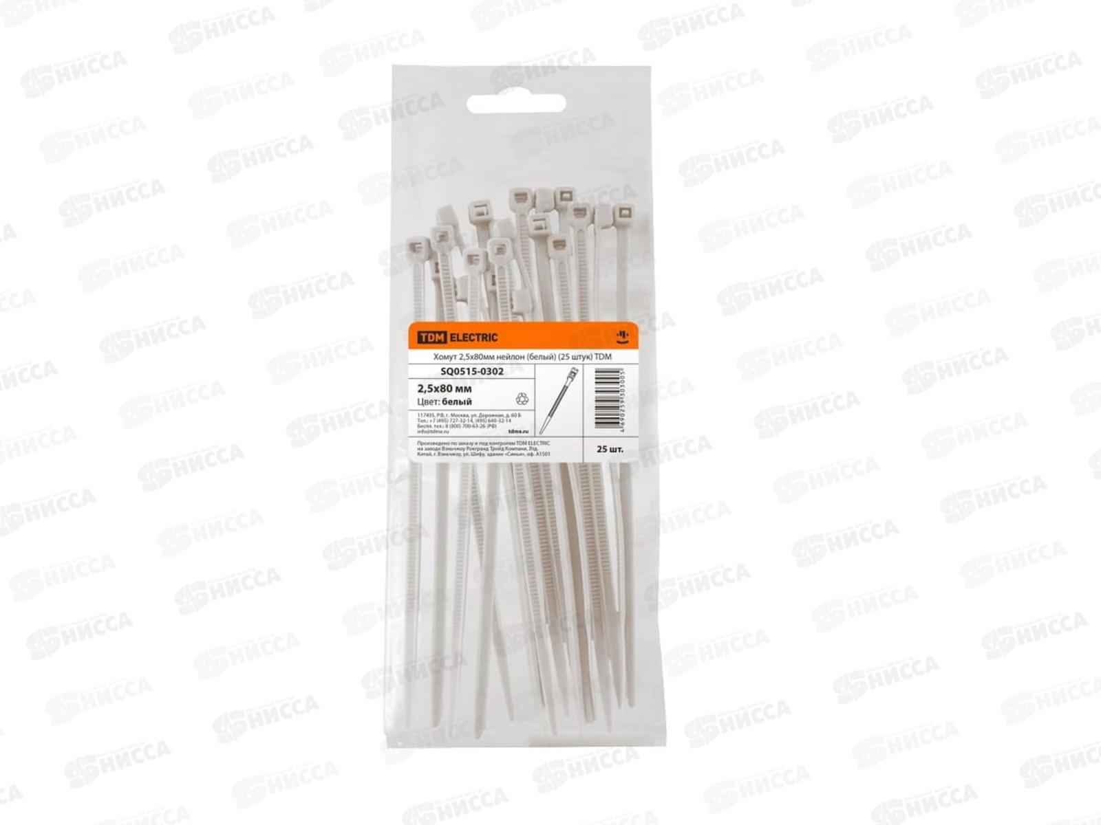 Код:491737; Хомут нейлон TDM 2.5*80мм 25шт белый, 0302 *50