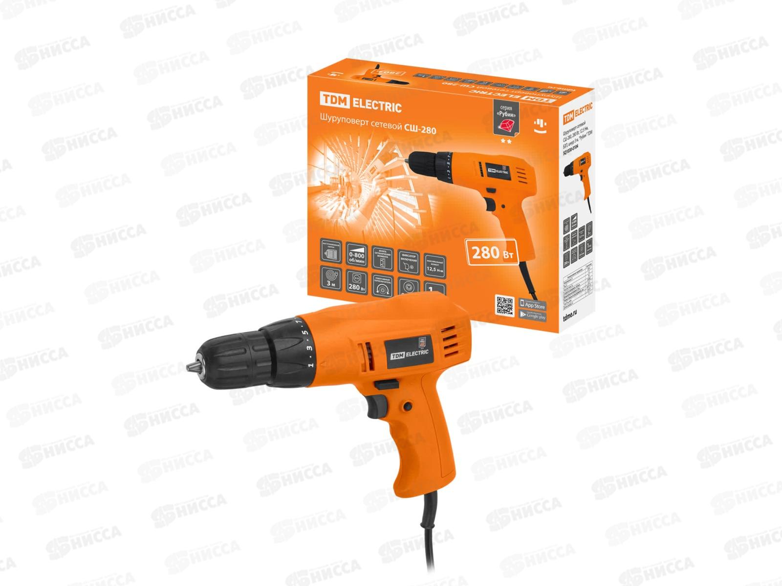 Код:559905; Шуруповерт сетевой СШ-280 280ВТ 12,5Нм БЗП шнур 3м Рубин 0104 TDM