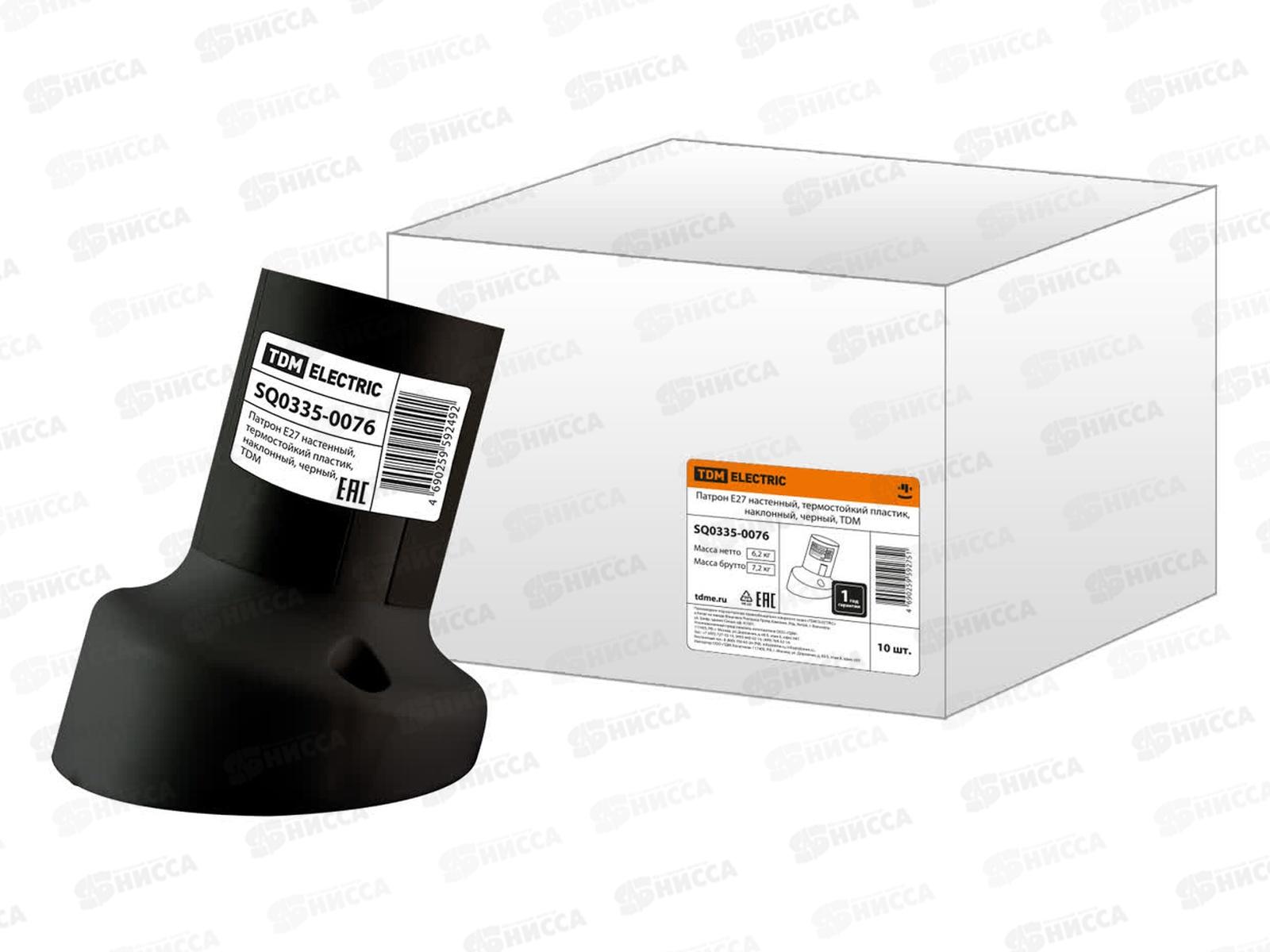 Код:566867; Электропатрон TDM E27 наклонный, термостойкий пластик, черный, 0076 *10/200