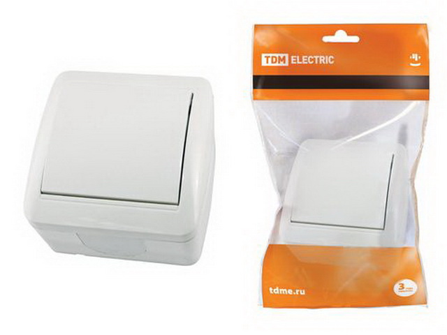 Код:221766; Выключатель TDM 1-клавишный открытой установки, IP44 10А белый, "Селигер", 0001 *10