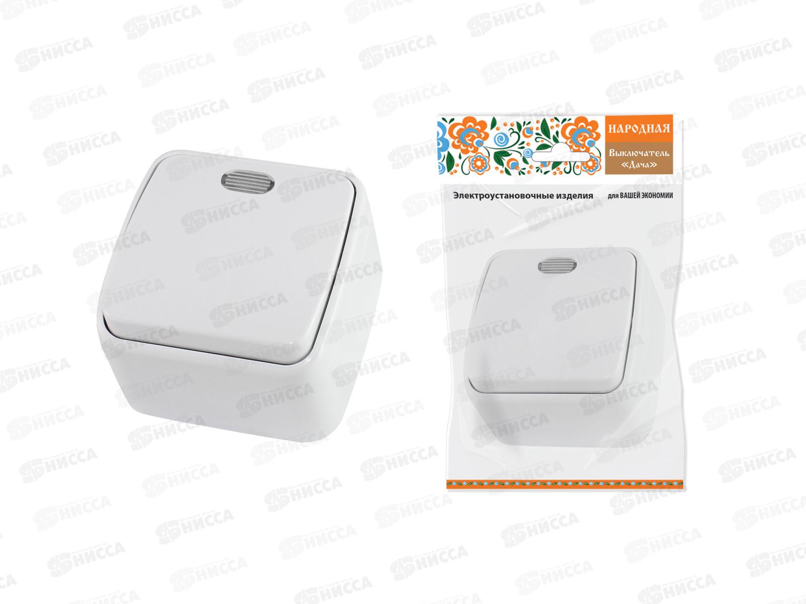 Код:384078; Выключатель 1-клавиша открытой установки с подсветкой IP20 10А, белый "Дача" Народная 0005 *10