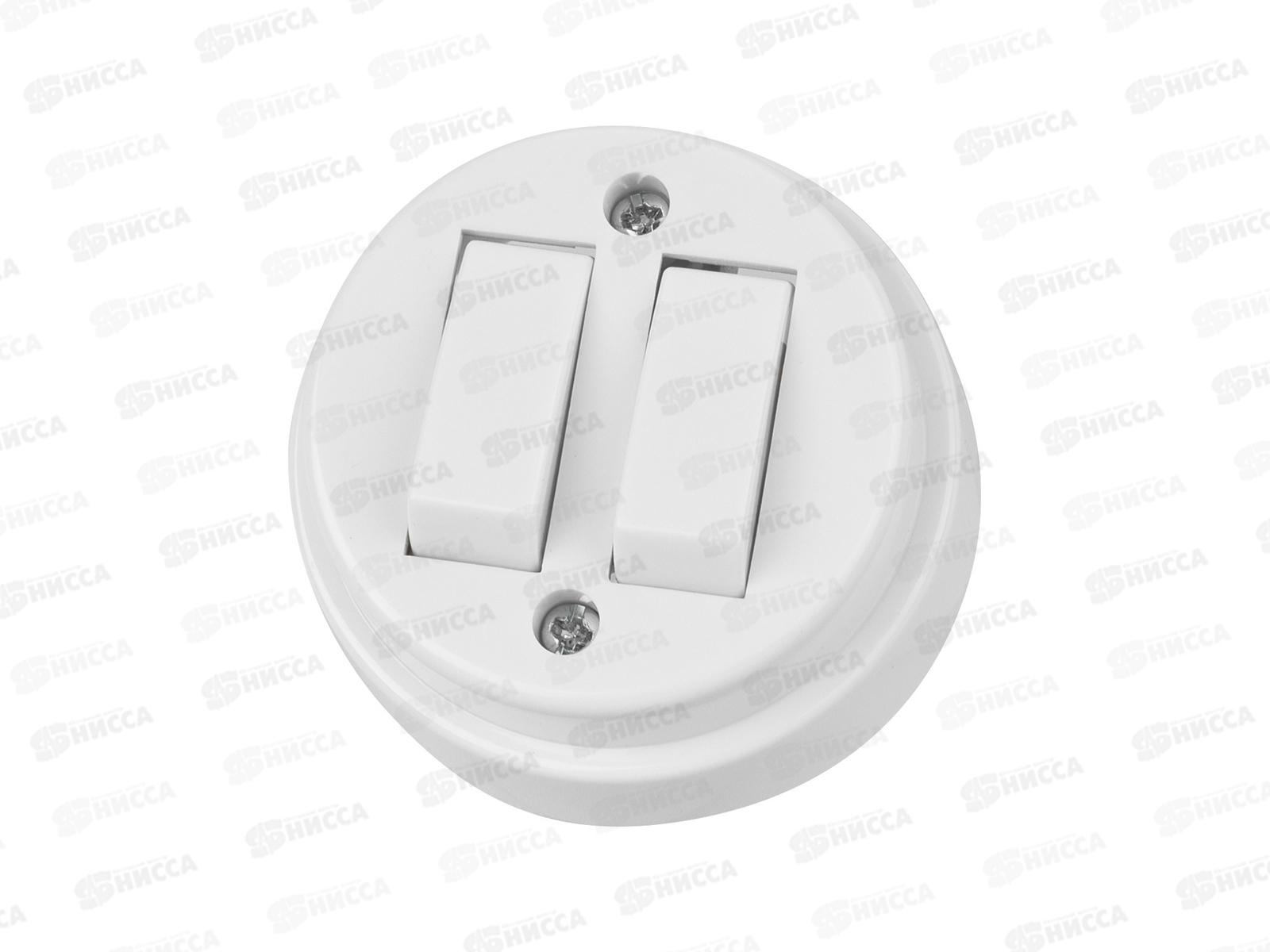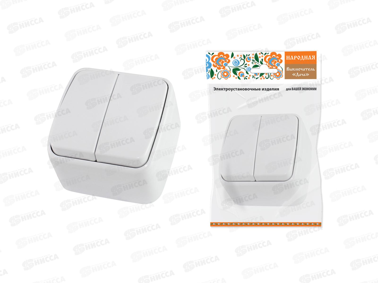 Код:384079; Выключатель 2-клавиши открытой установки IP20 10А, белый "Дача" Народная 0002