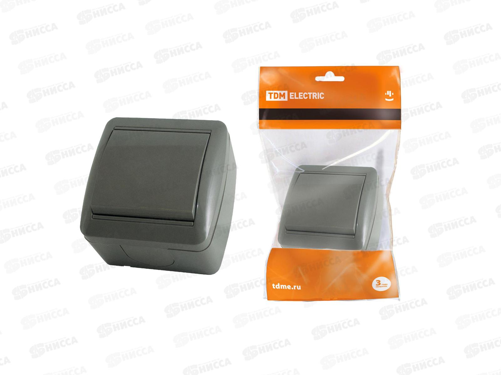 Код:395631; Выключатель TDM 1-клавиша открытая установка, IP44 10А серый, "Селигер", 0101 *10