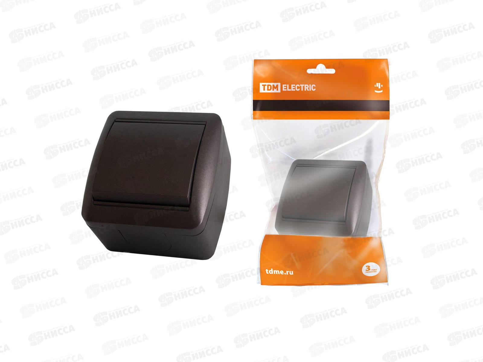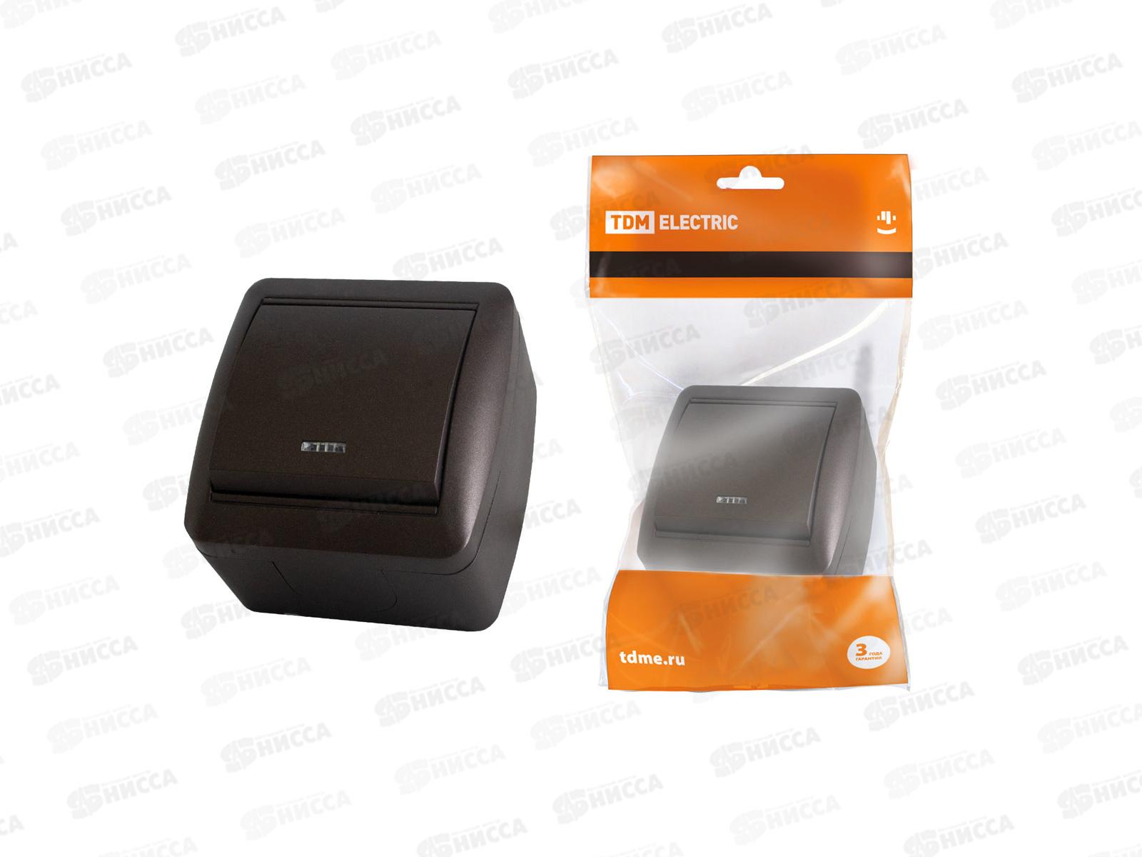 Код:395685; Выключатель TDM 1-клавиша открытая установка, 10А шоколад "Селигер", 0201 *10