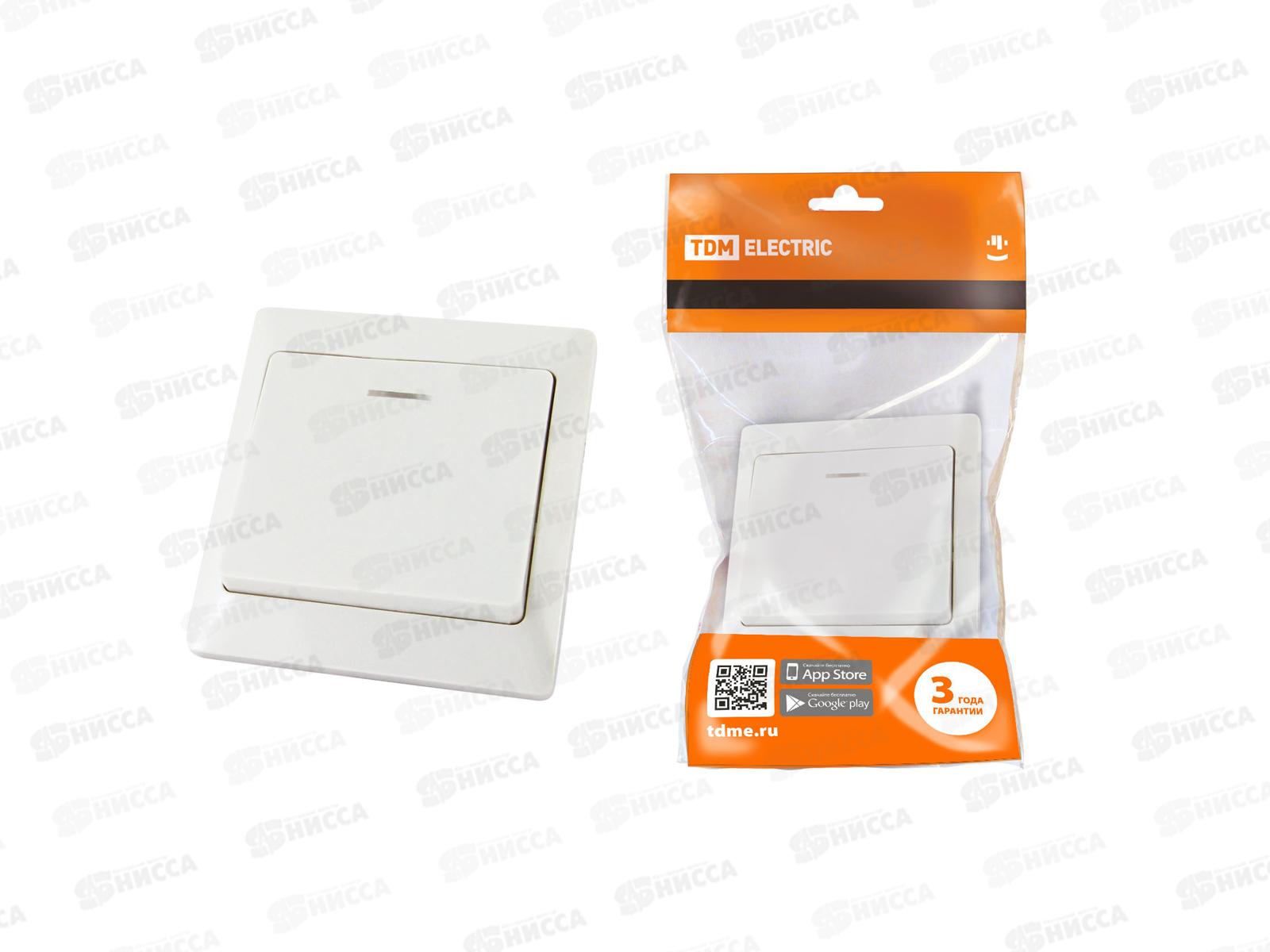 Код:395720; Выключатель TDM 1-клавиша скрытая установка, с подсветкой, 10А белый "Ильмень", 0003