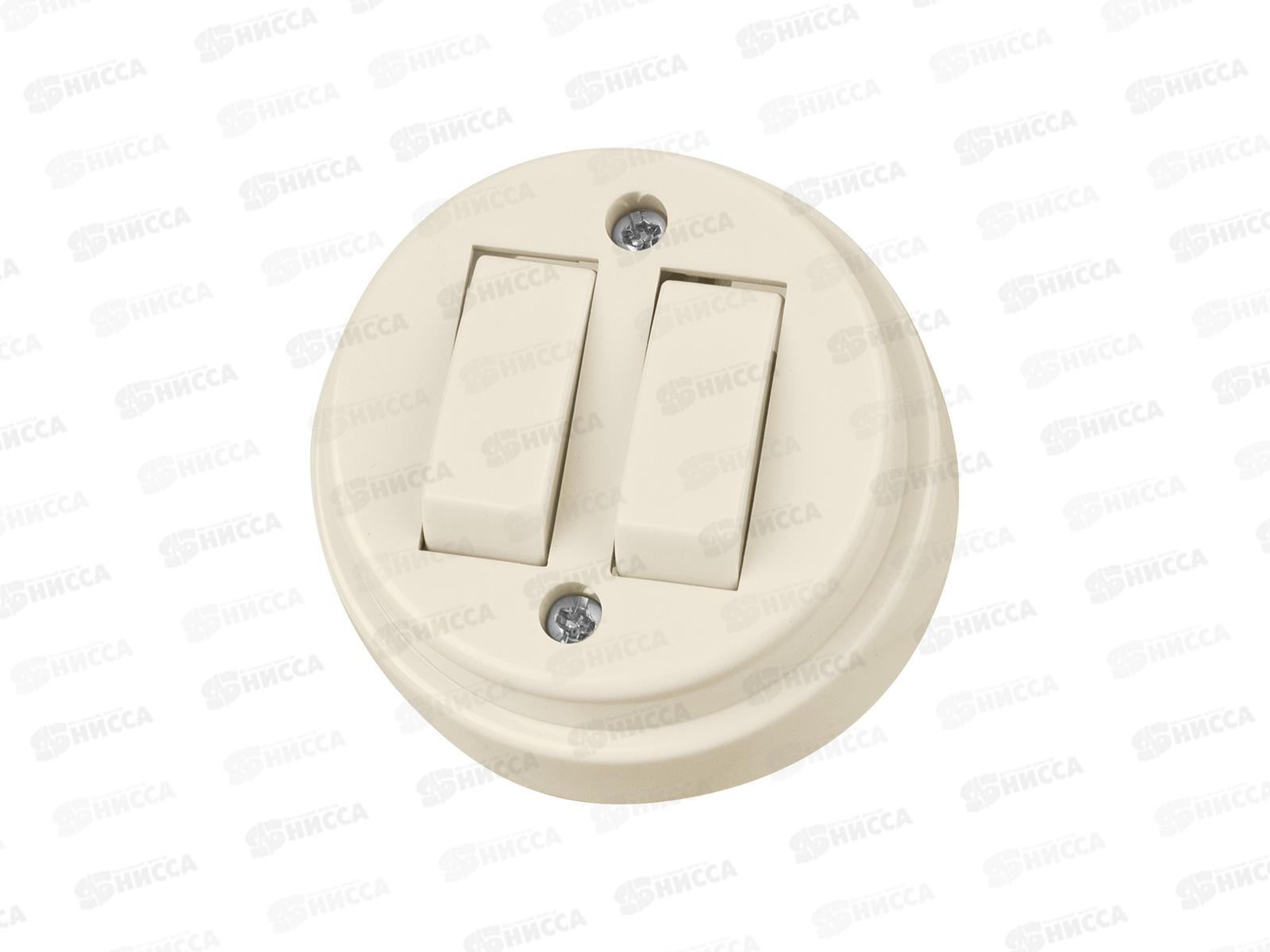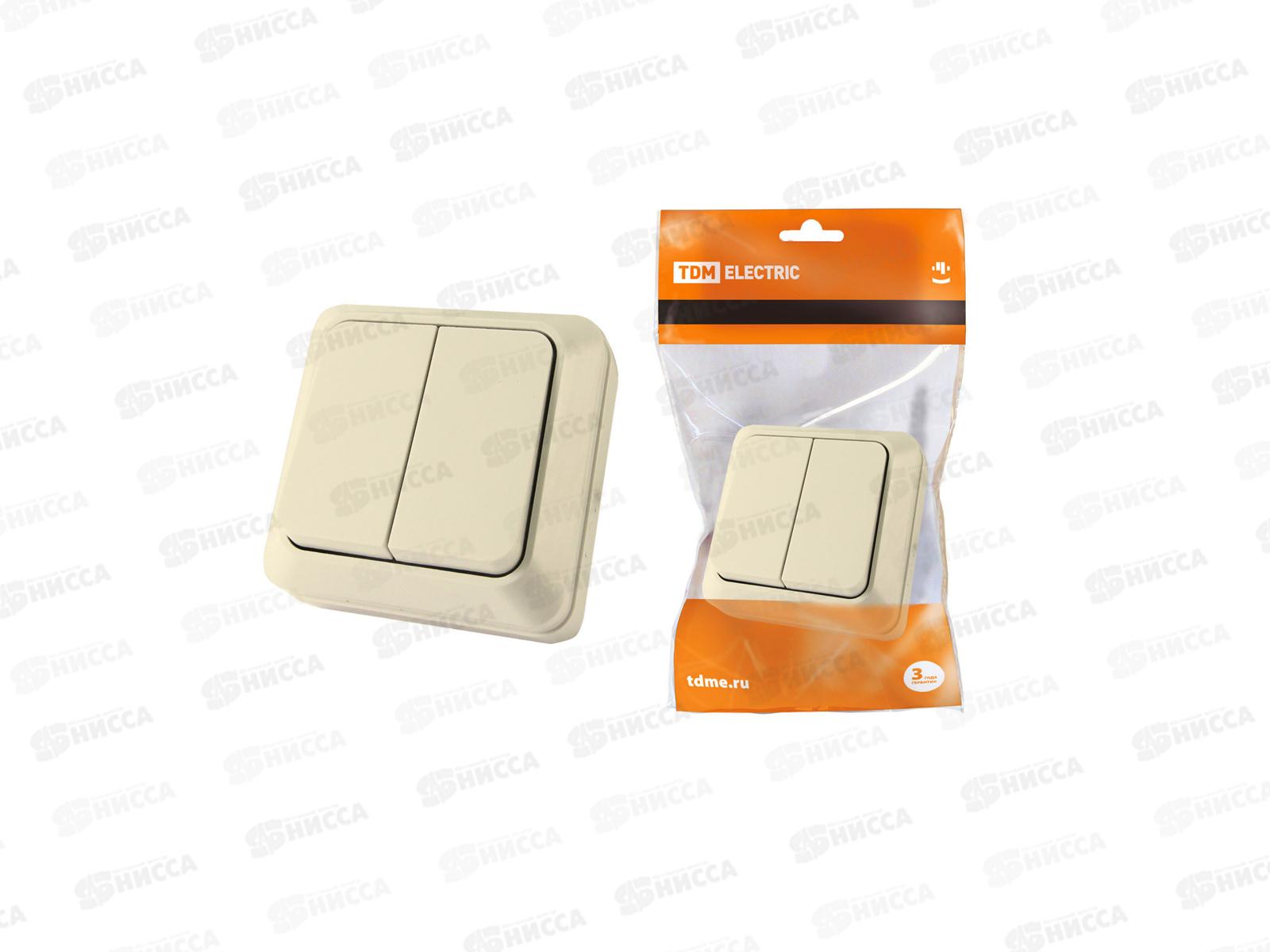 Код:414255; Выключатель TDM 2 клавиши открытой установки, IP20 10А слоновая кость, "Ладога", 0004