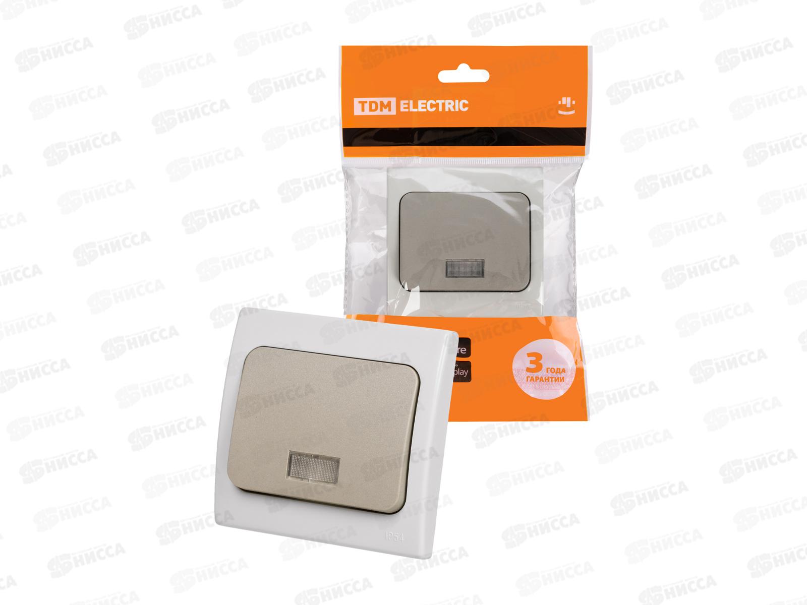 Код:099937; Выключатель TDM 1-кл. о/у, подсв., IP20 10А сл.кость, "Ладога", 0010