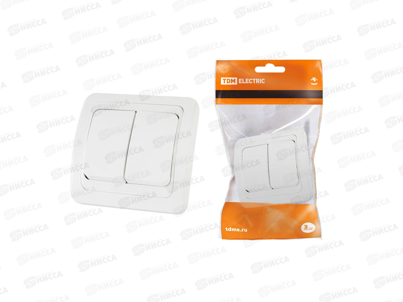 Код:249464; Выключатель TDM 2-клавишный 10А белый Таймыр бакелит, 0502