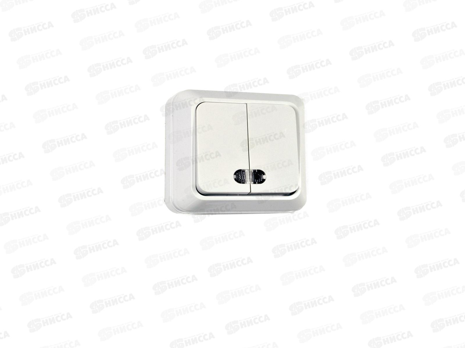 Код:099893; Выключатель TDM 2-клавишный открытой установки,с подсветкой, IP20 10А белый "Ладога", 0007