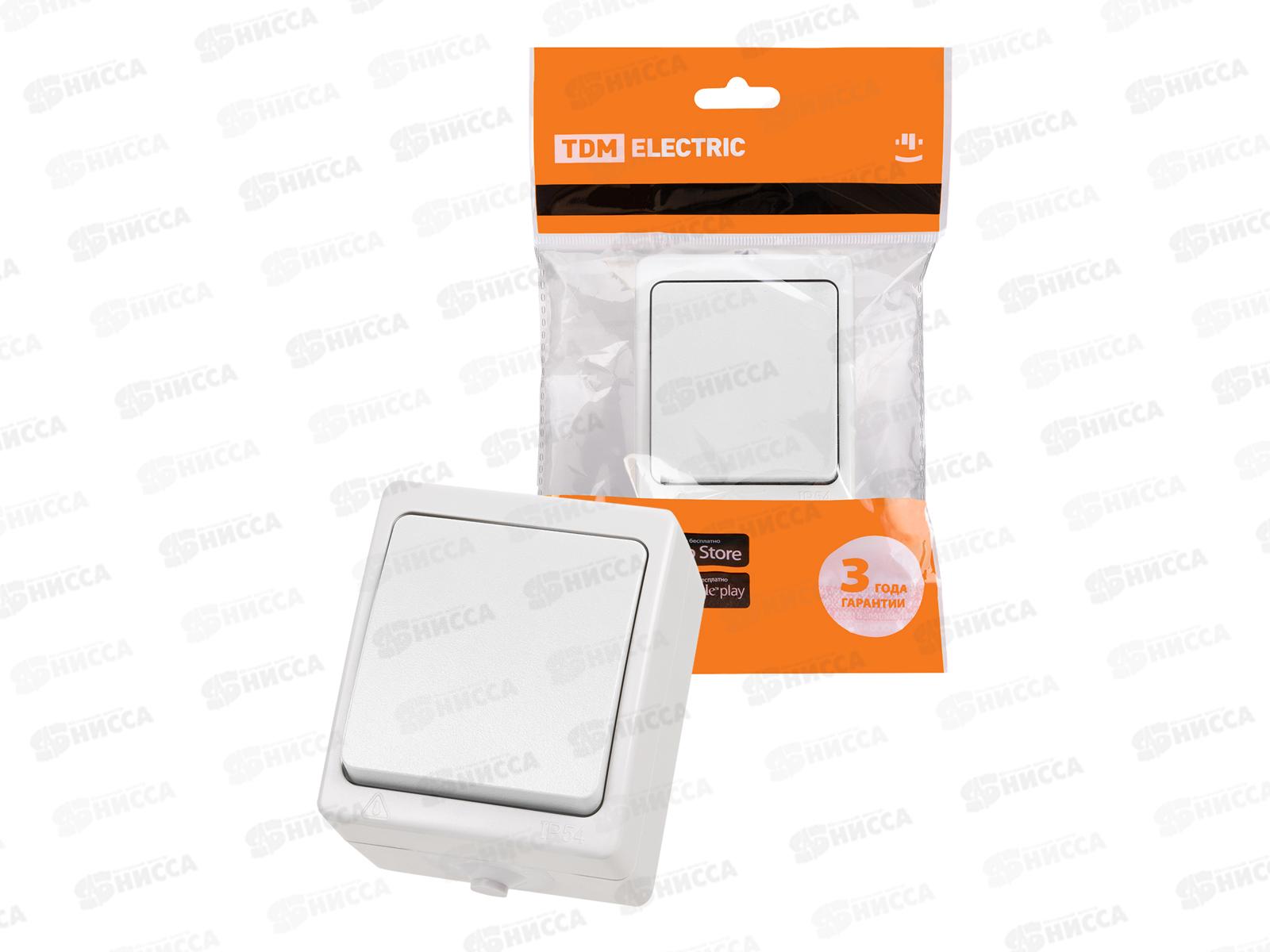 Код:221766; Выключатель TDM 1-клавишный открытой установки, IP44 10А белый, "Селигер", 0001 *10