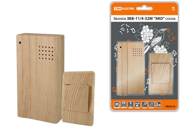 Код:249469; Звонок беспроводной на батарейках ЗББ-11/4-32М сосна 32мелодии, 2хААА TDM, 0022