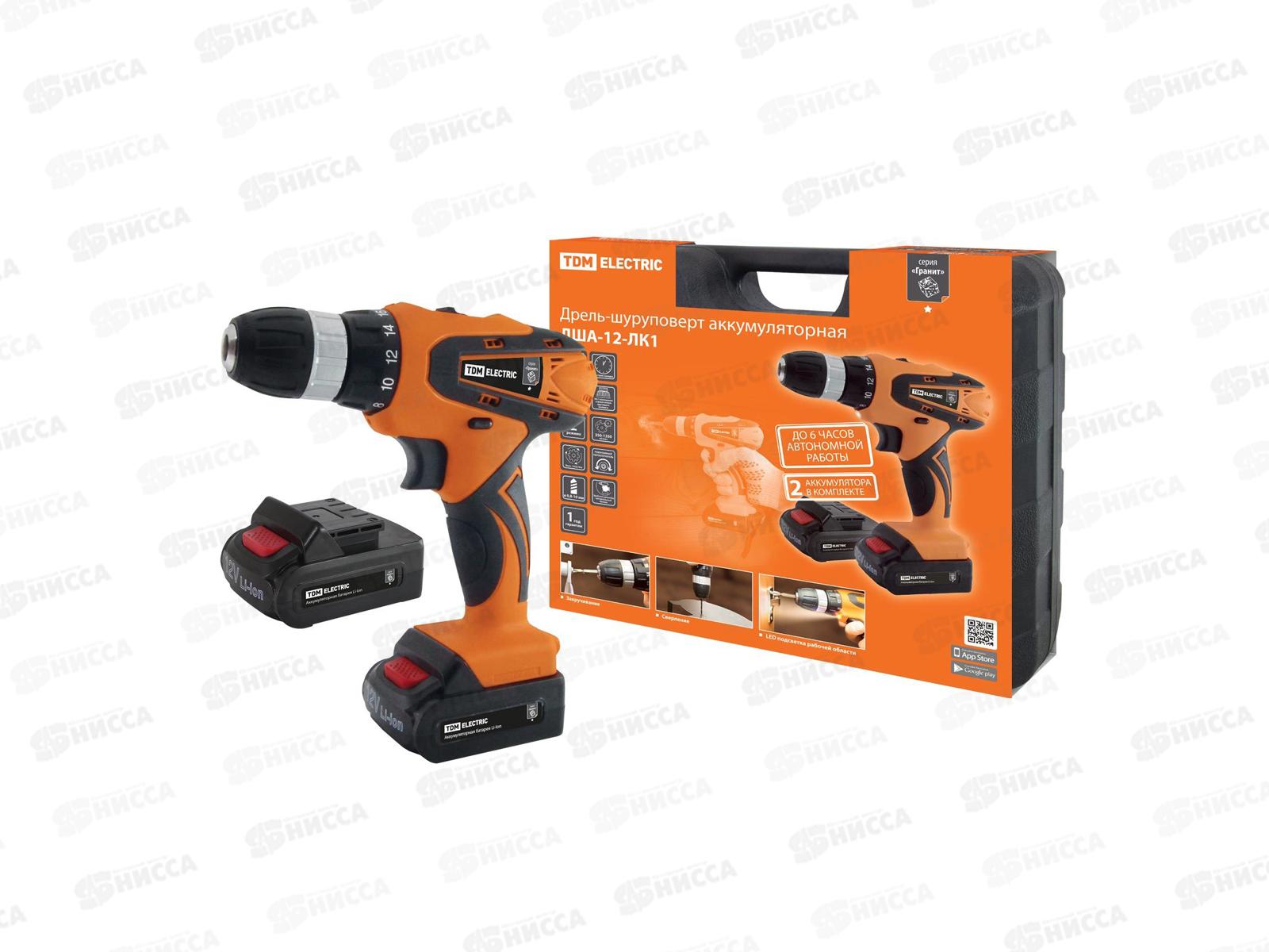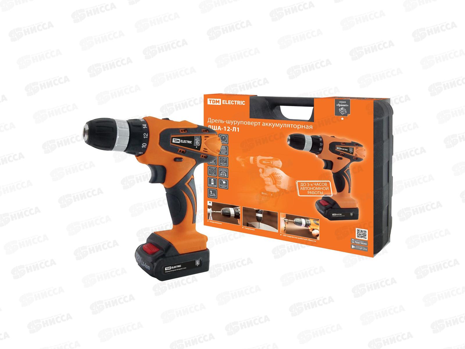 Аккумуляторная дрель-шуруповерт TDM ДША-12-Л1 "Гранит", 12 В, SQ1030-0201 – универсальное устройство для закручивания/откручивания шурупов, са...
