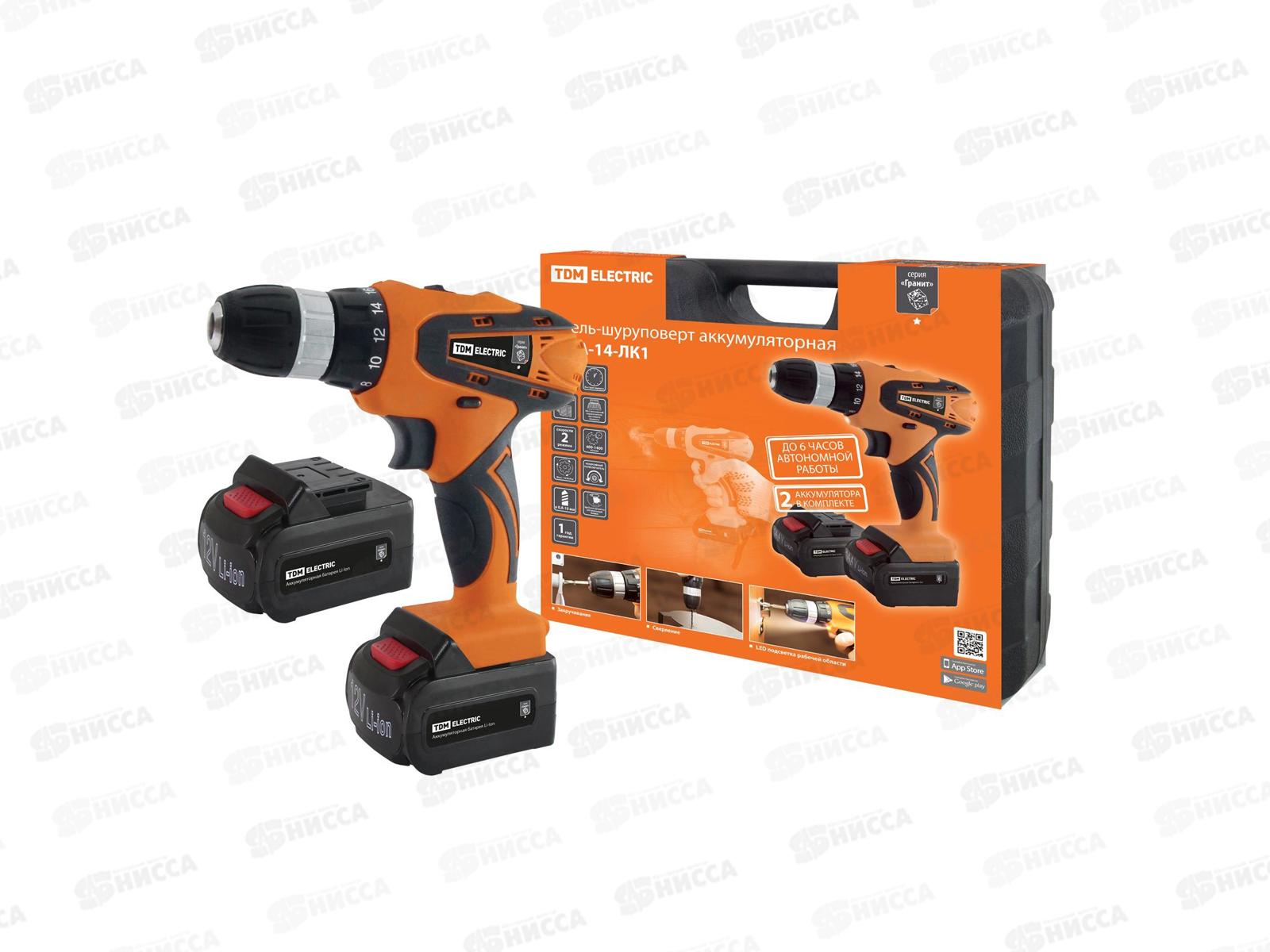 Аккумуляторная дрель-шуруповерт TDM ДША-14-ЛК1 "Гранит", SQ1030-0203 – универсальное устройство для закручивания/откручивания шурупов, саморез...