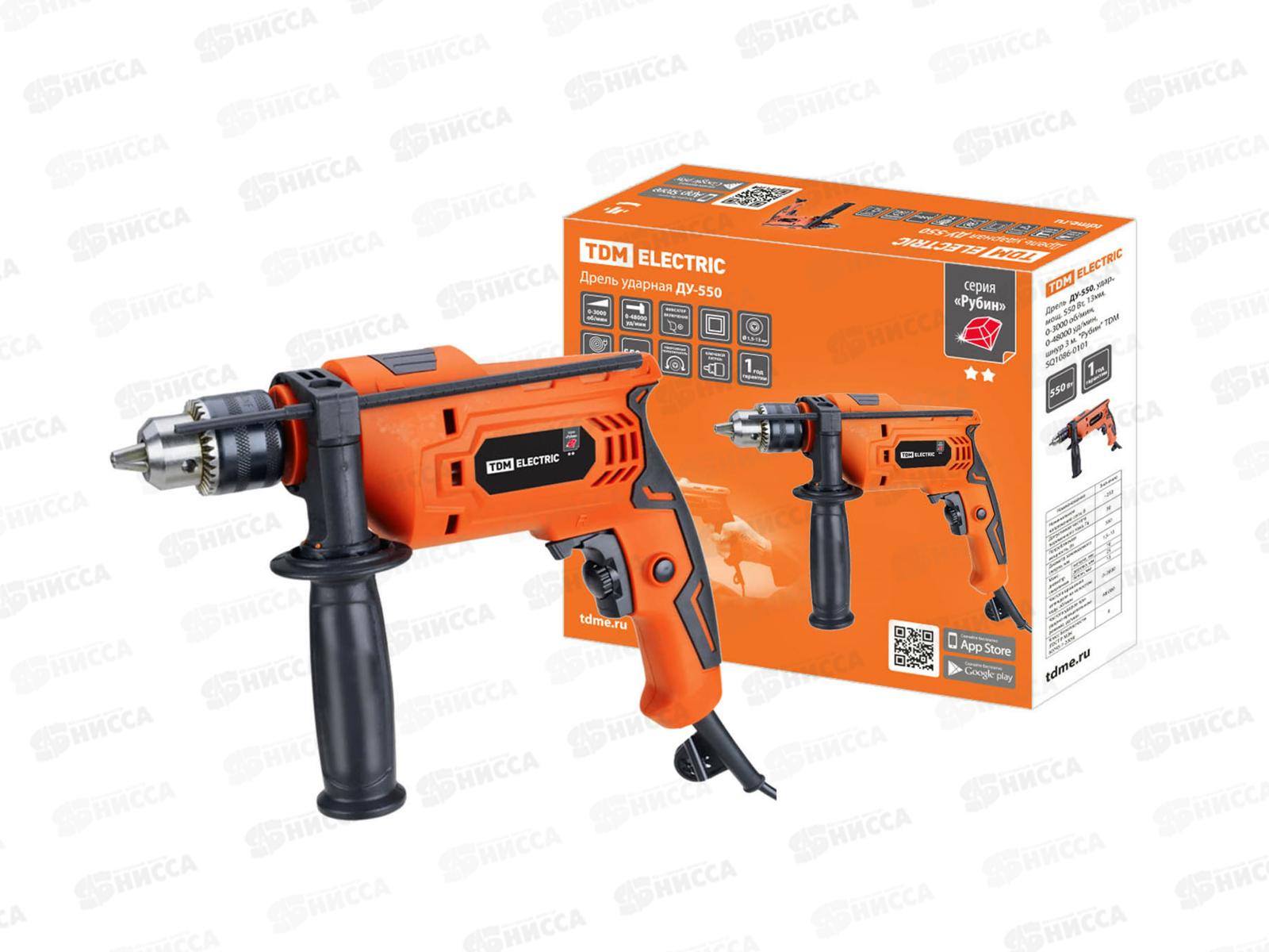 Код:463185; Дрель ударная ДУ-550, 550Вт, 0-3000 об/мин, 0-48000 уд/мин, 3м, Рубин TDM 0101 *5