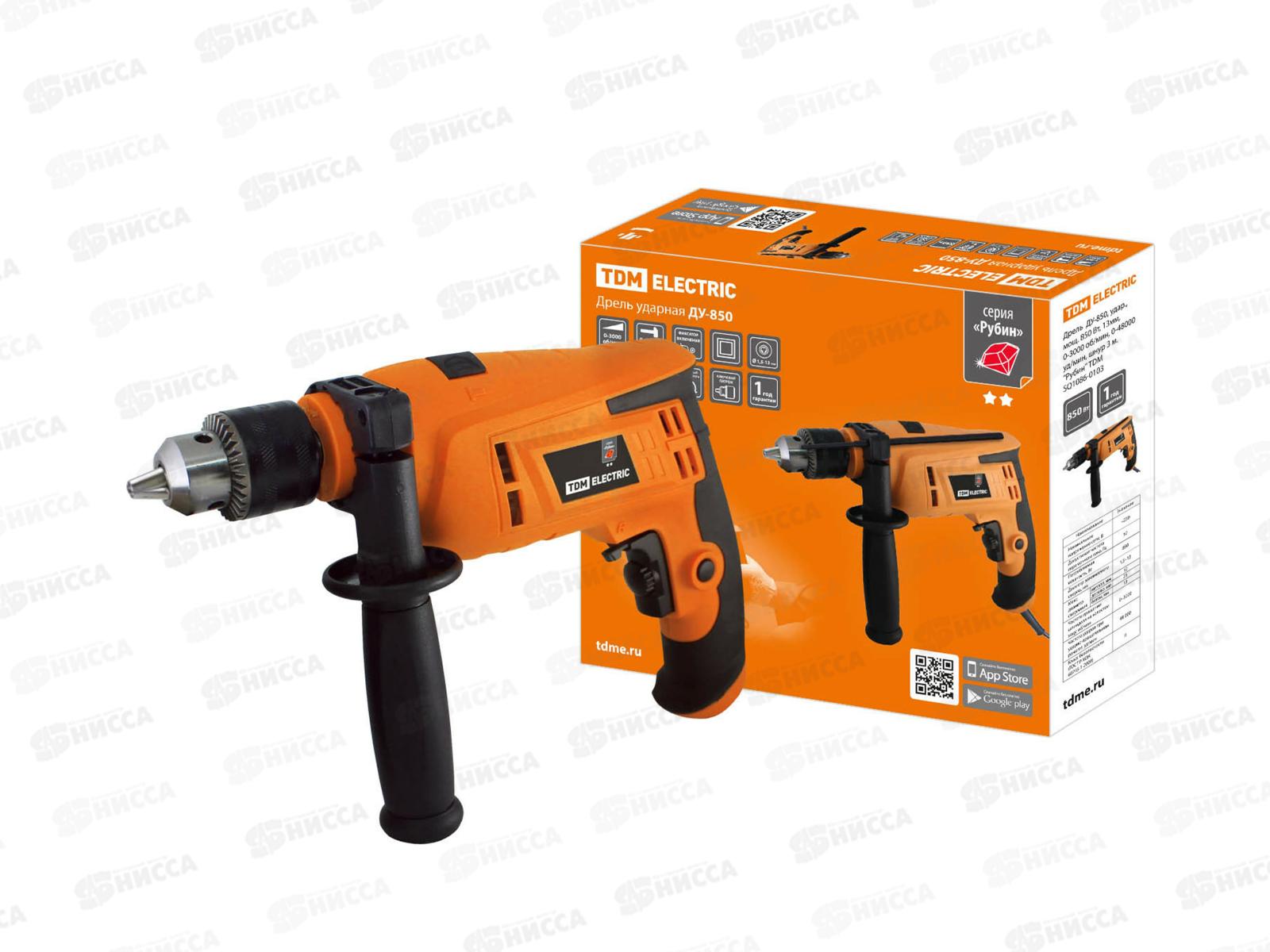 Код:463186; Дрель ударная ДУ-850, 850Вт, 0-3000 об/мин, 0-48000 уд/мин, 3м, Рубин TDM 0103