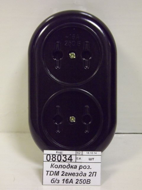 Код:008034; Колодка роз. TDM 2гнезда 2П б/з 16А 250В "Ретро" карболит