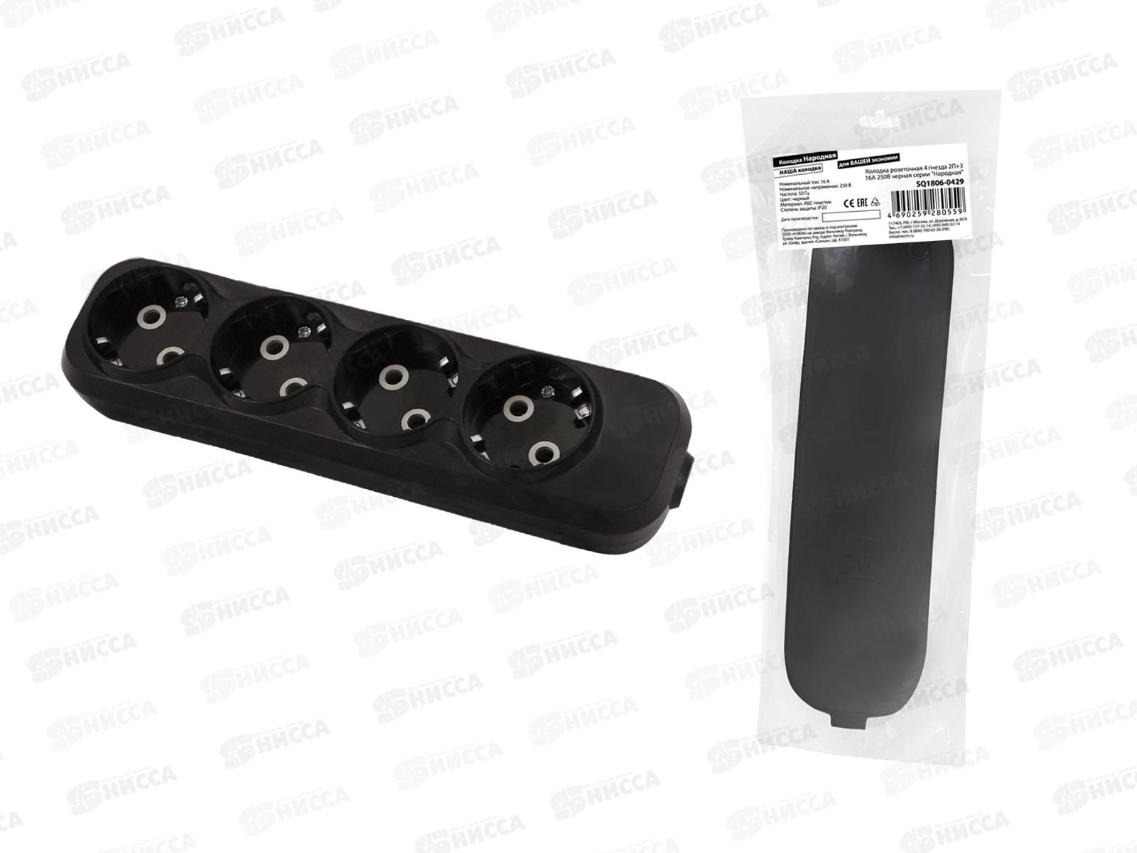 Код:567074; Колодка розеточная 4 гнезда 2П+3 16А 250В черная серии "Народная" К4-3, 0429 *100