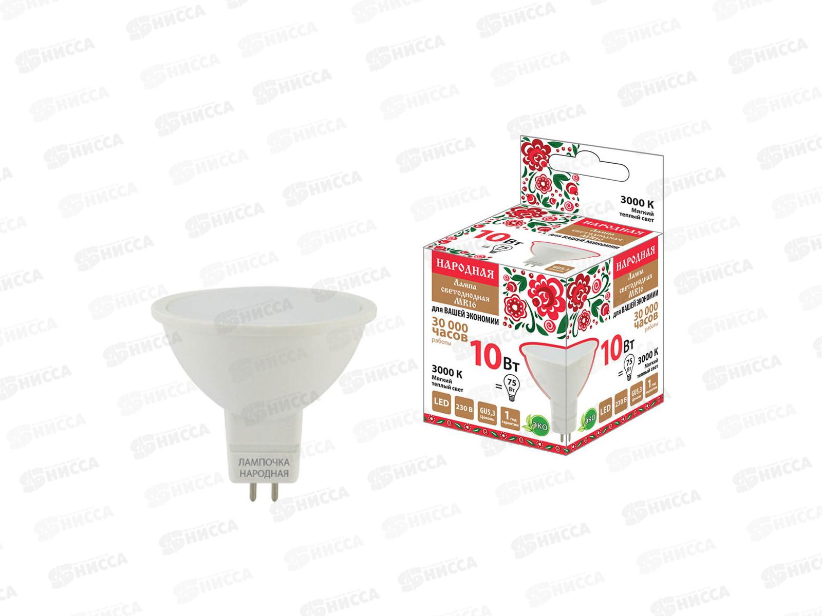Код:429765; Лампа светодиодная Народная MR16-10Вт 230В 3000К GU5.3, 1609