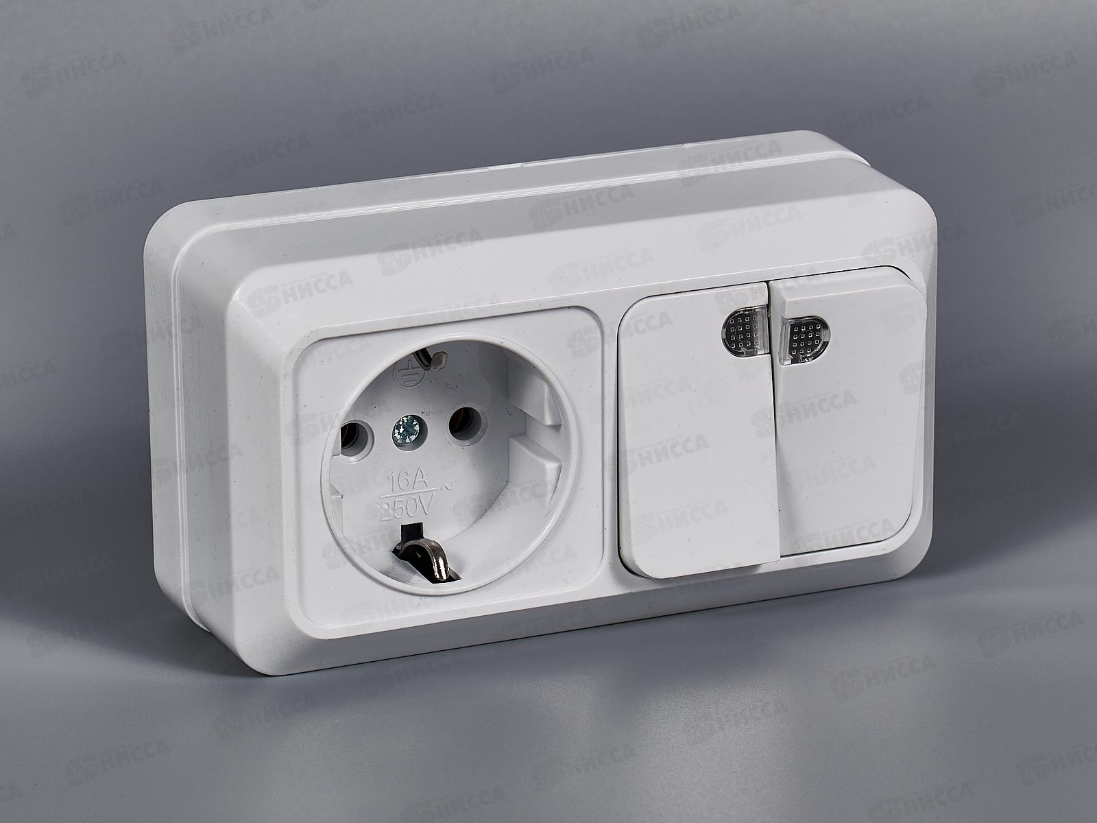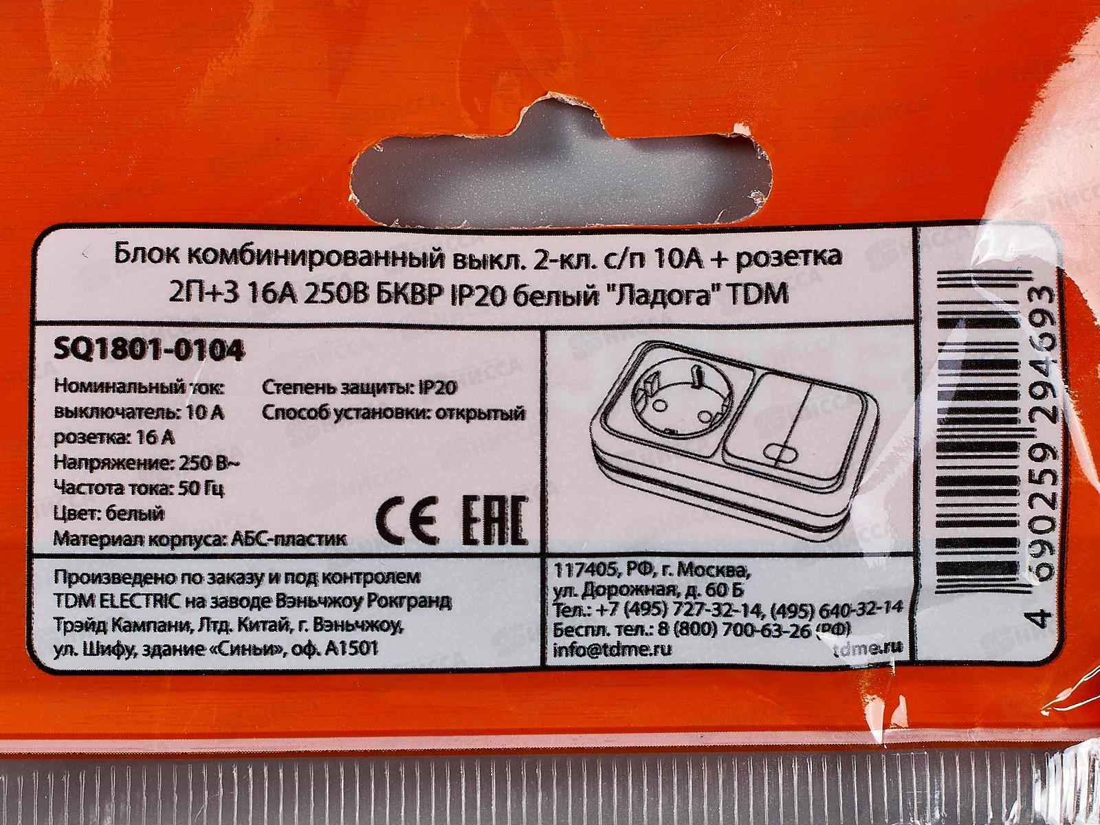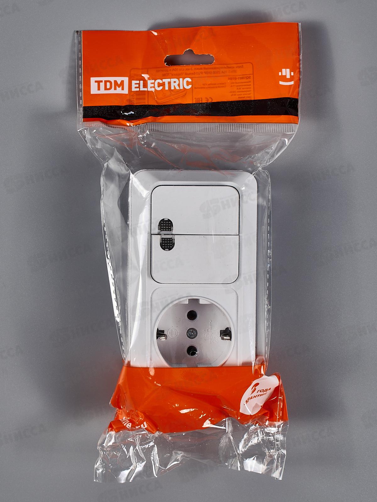 Блок (2выключатель+розетка) TDM 10А с подсветкой, розетка 16А, БКВР IP20 "Ладога", 0104 *5/100