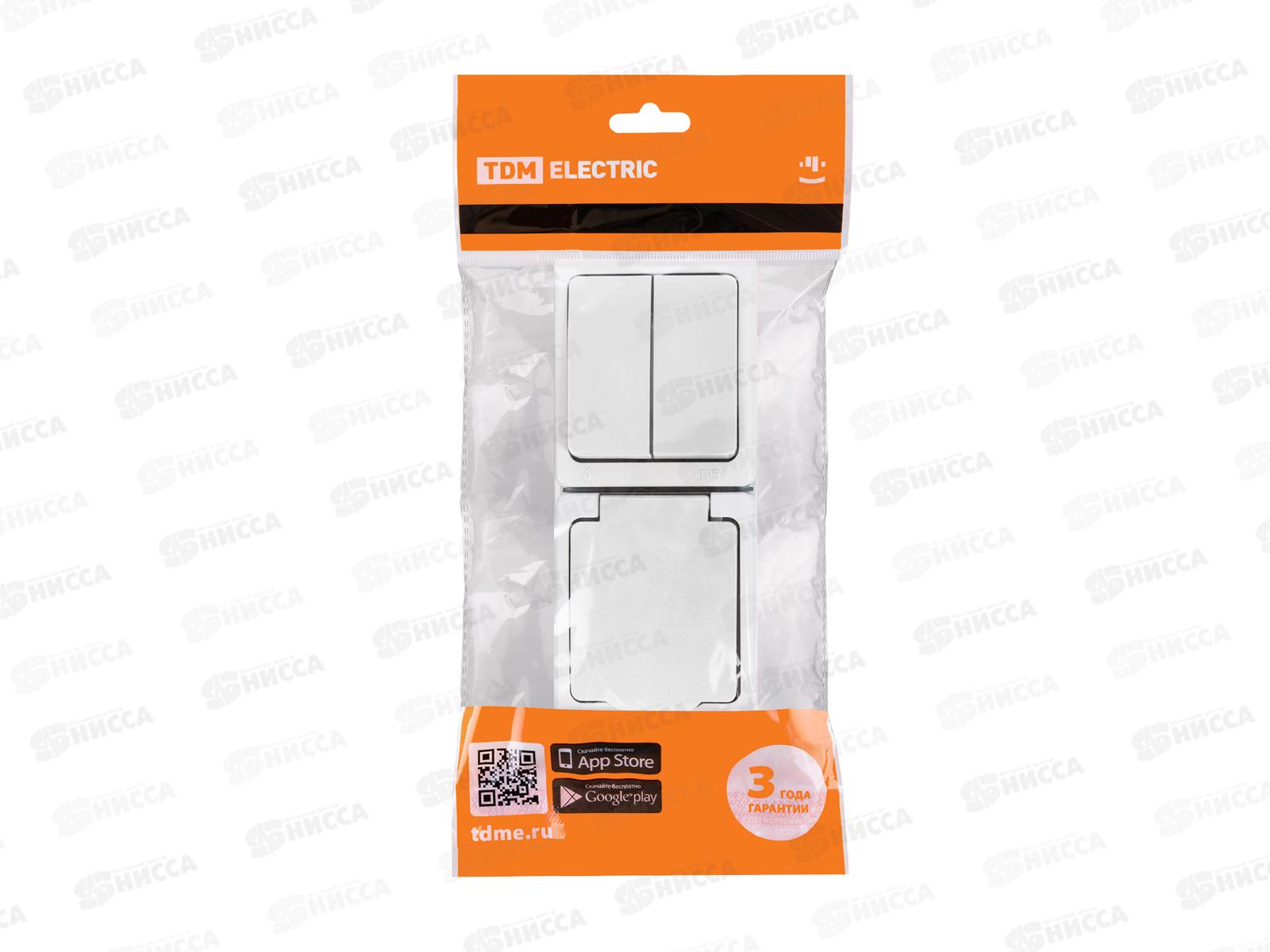 Блок выключатель 2кл вертикальный+розетка 2П+З с з/ш БКВР TDM 1013