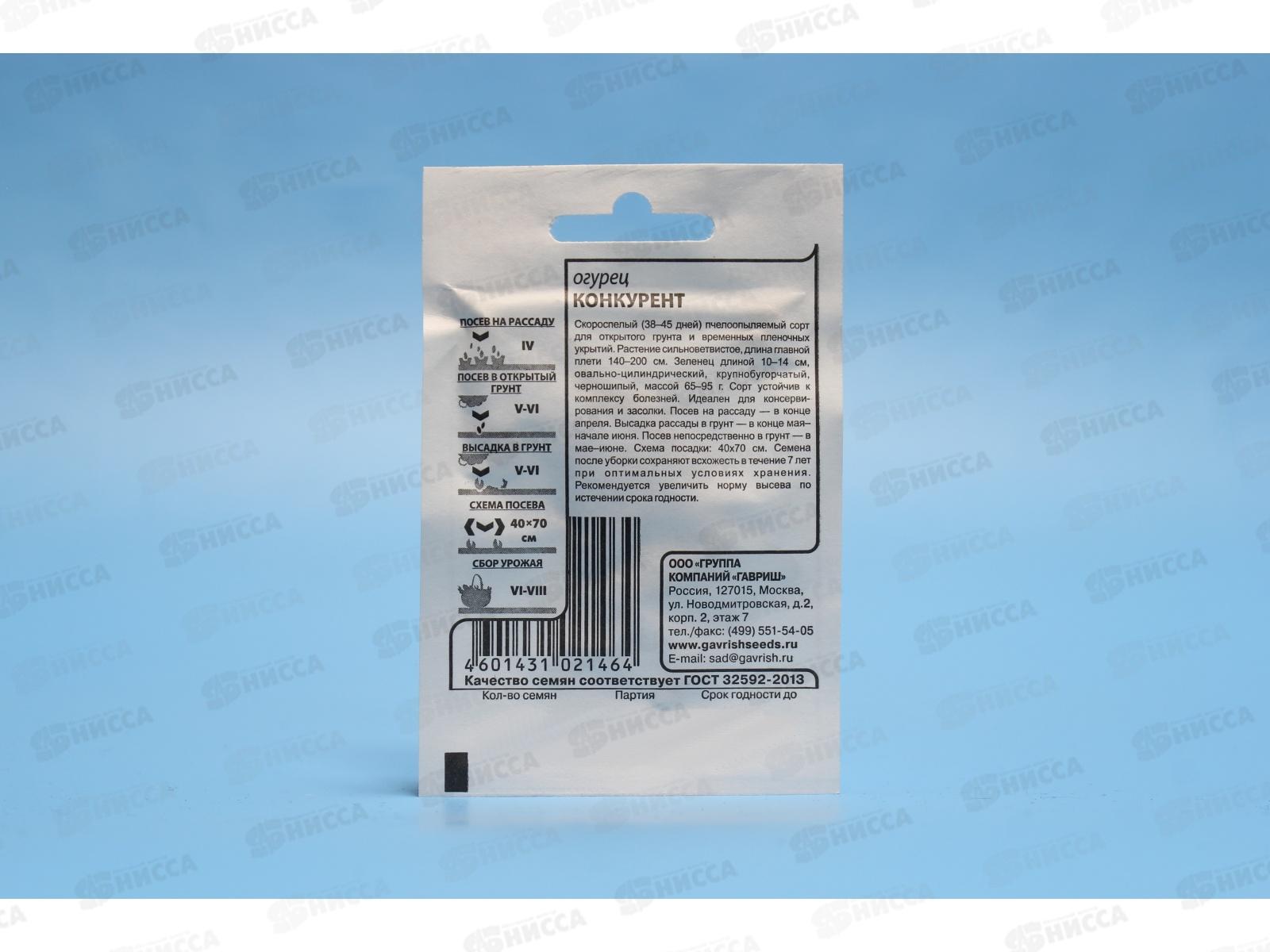 Код:135693; Огурец Конкурент 0,3 грамм Хит х3 *20 ГШ +