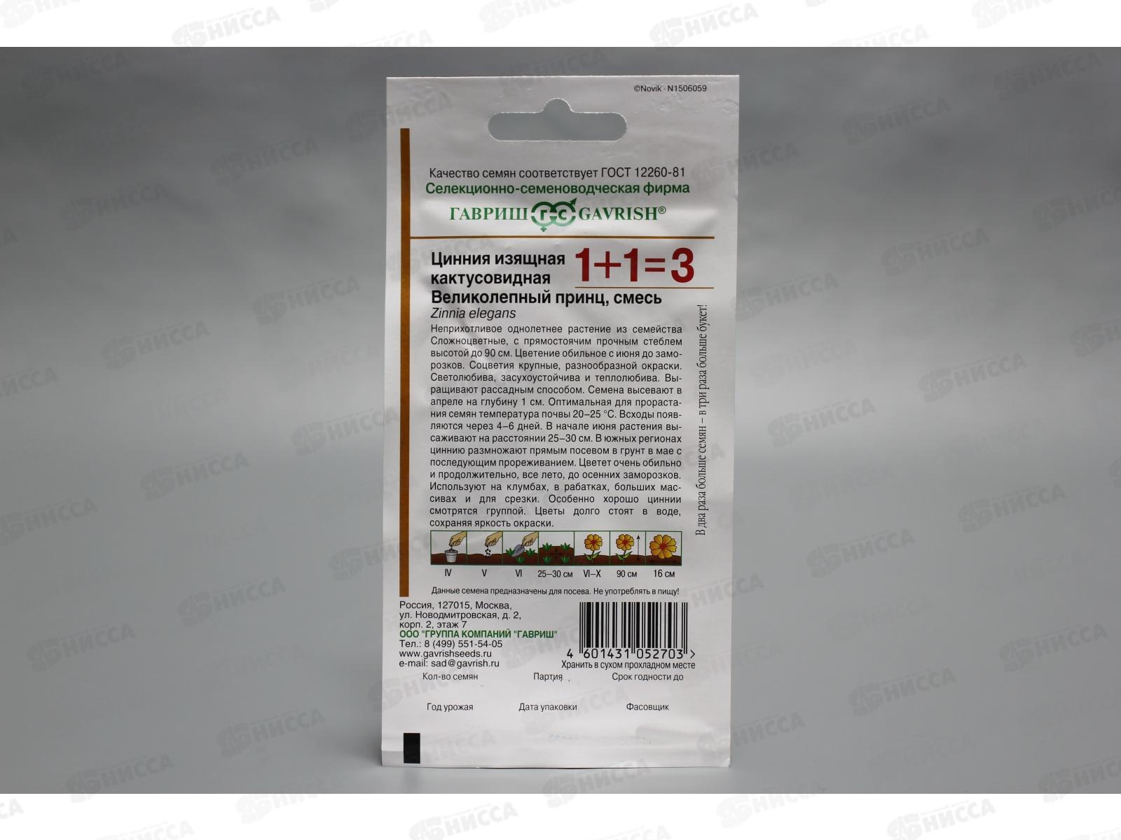 Цинния Великолепный принц, кактусовидная смесь 0,5 грамм 1+1 *10 ГШ +