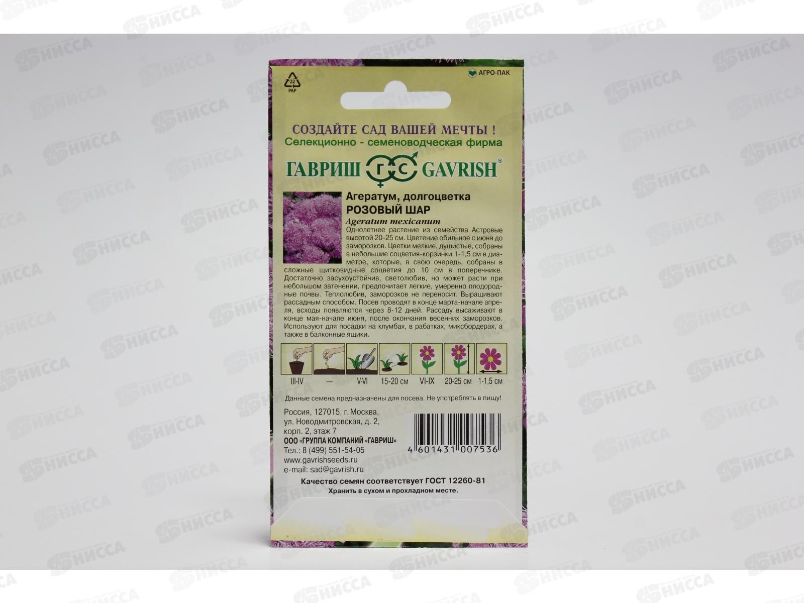 Агератум Розовый шар 0,05г серия Сад ароматов *10 ГШ +