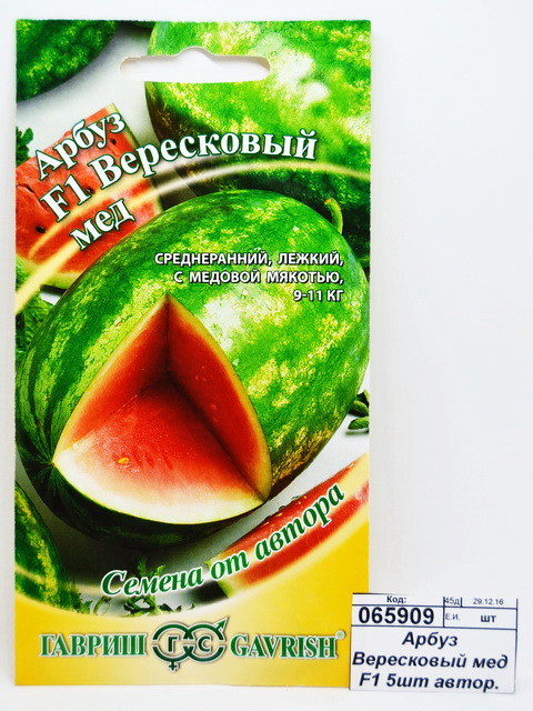 Арбуз Вересковый мед F1 5шт авторский Н12 *10 ГШ +