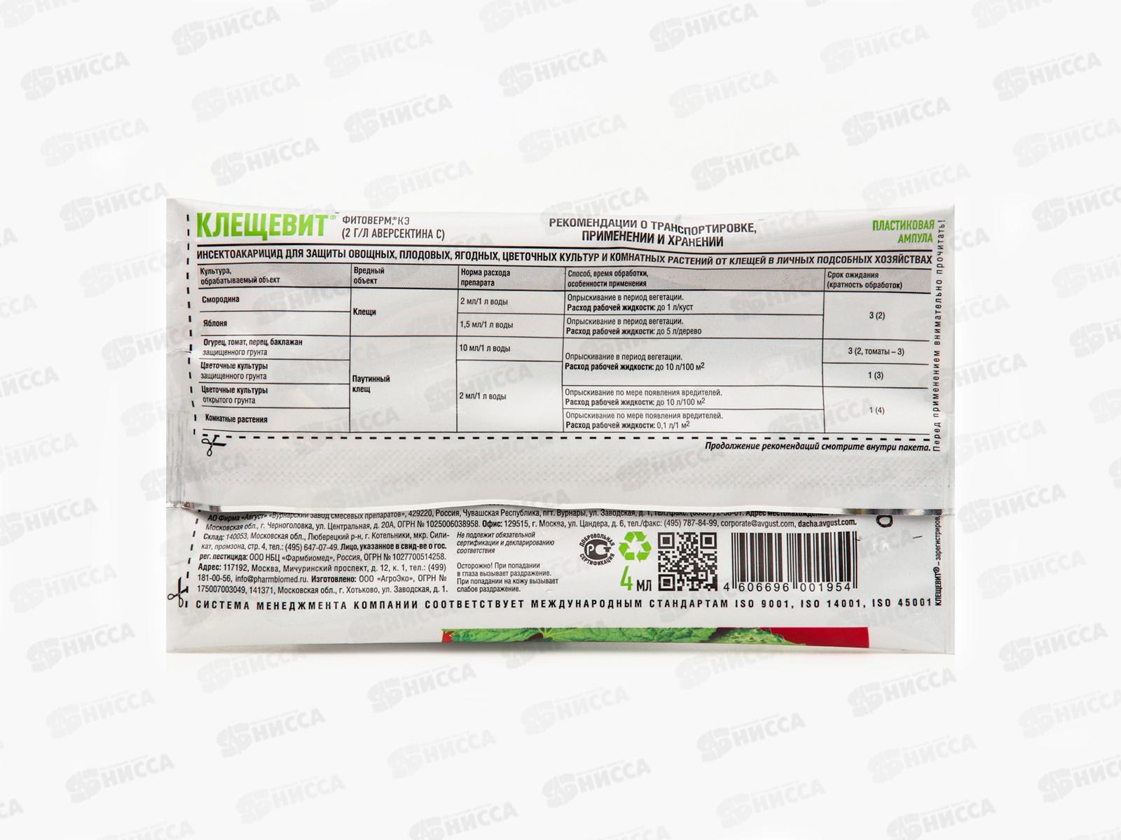 Клещевит 4мл от клещей *200 Август