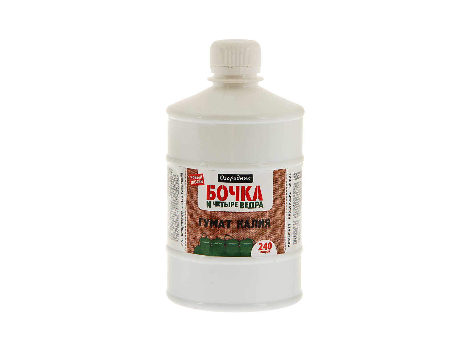 Код:106913; Бочка и четыре ведра гумат калия органическая жидкость в бутылках 600мл *9