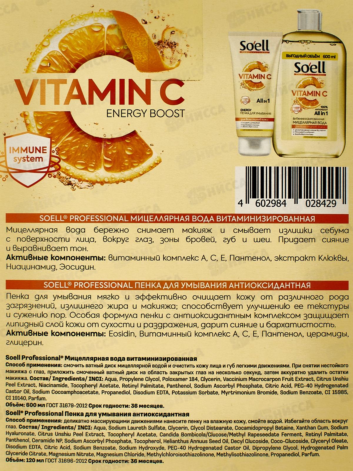 Состав мицеллярной воды: вода, Пропиленгликоль, Полоксамер 184, Глицерин, Экстракт плодов Vaccinium Macrocarpon, Экстракт кожуры цитрусовых Unshiu, Ниацинамид, токоферилацетат, Ретинилпальмитат, Пантенол, Аскорбилфосфат натрия, Лимонная кислота, гидрогенизированное касторовое масло PEG-40, кокоамфоацетат натрия, Пропандиол, Динатрий ЭДТА, сорбат калия., Бромид миртримония, бензоат натрия, CI 15985, CI 19140, Парфюмированная вода. Состав пенки для умывания: вода, Лауретсульфат натрия, Клицерин, Дистеарат Кликола, Кокамидопропилбетаин, Ксантановая камедь, гиалуронат натрия, Экстракт кожуры цитрусовых Уншиу, Токоферилацетат, Фермент Кандида Бомбикола/Глюкоза/Метилрапсид, Ретинилпальмитат, Пантенол, Керамид NP, аскорбилфосфат натрия, токоферол, Семена гелиантуса однолетнего. Масло, Децилглюкозид, Кококлюкозид, Глицерилолеат, Динатрий ЭДТА, Лимонная кислота, Бензоат натрия, гидроксид натрия, гидрогенизированное касторовое масло PEC-40, Дипропиленгликоль, гидрогенизированный цитрат пальмового глицерида, Нитрат магния, хлорид магния, метилхлоризотиазолинон, Метилизотиазолинон, Пропандиол, Парфюмированная вода.