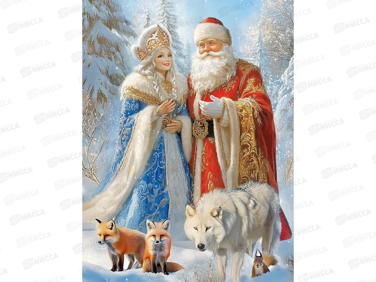 Код:590982; Холст с красками 30х40см Дед Мороз и внучка, ХК-0526