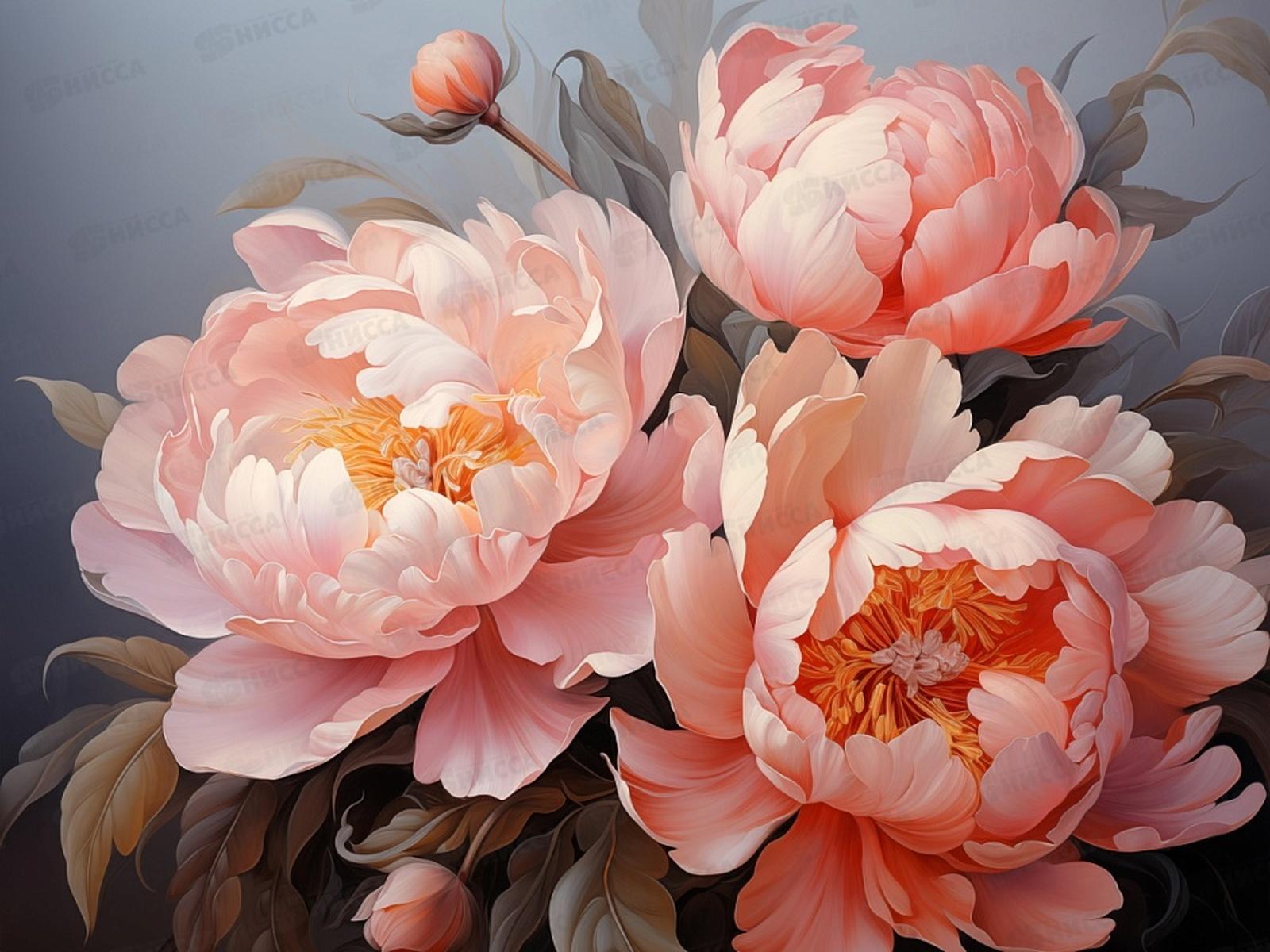 Код:591000; Холст с красками 30х40см Нежно розовые пионы, Х-5194